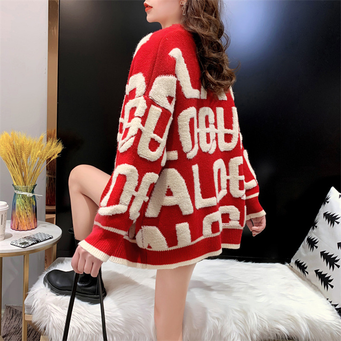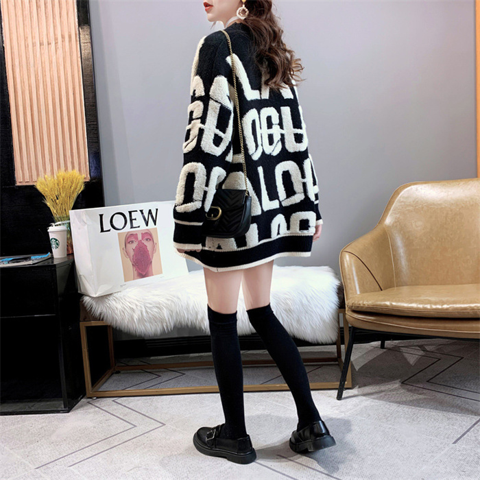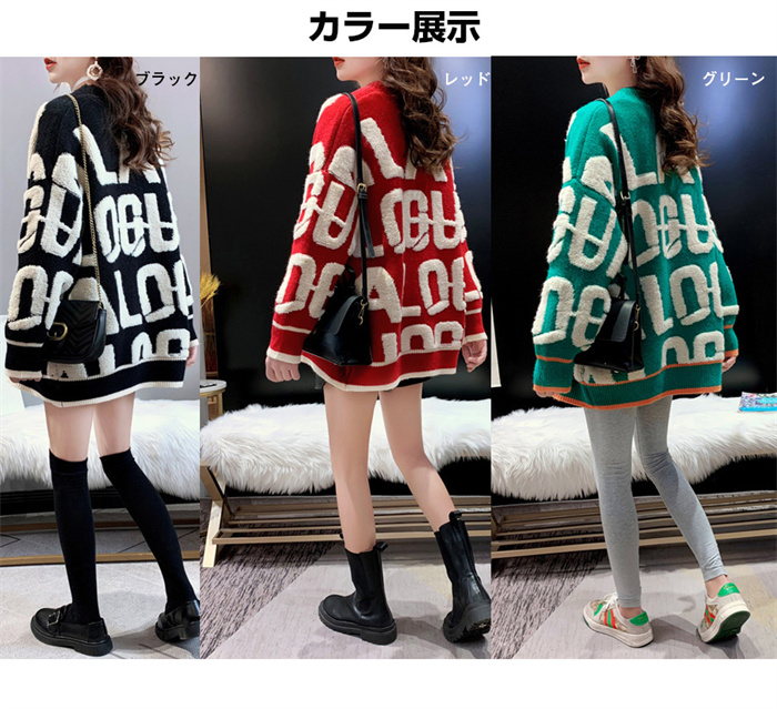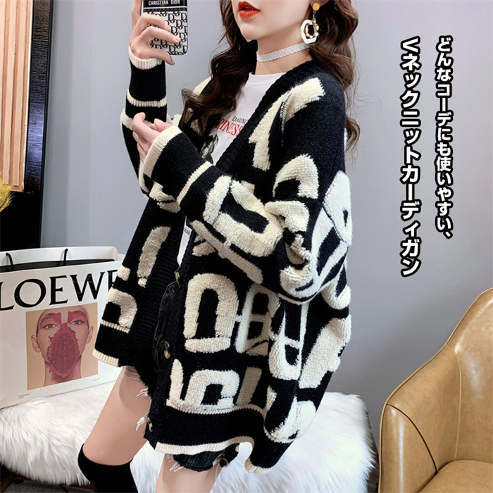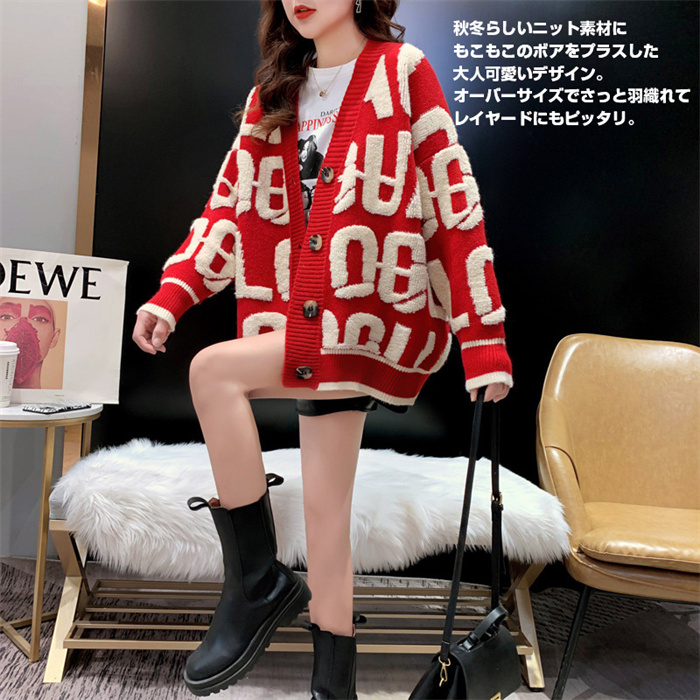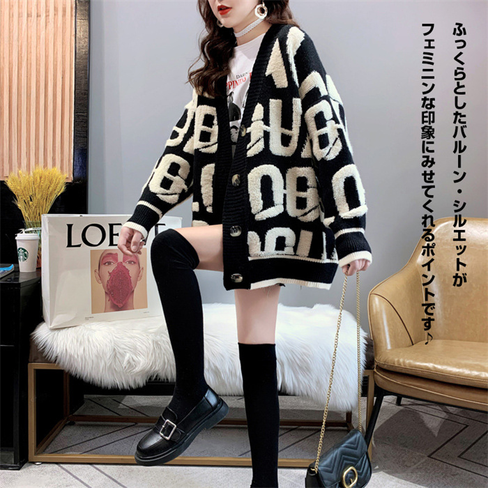 配色アルファベット カーディガン レデ