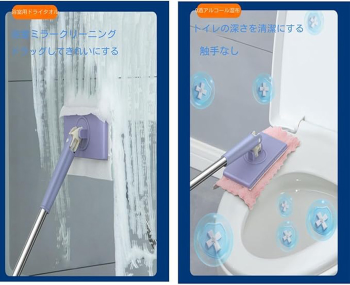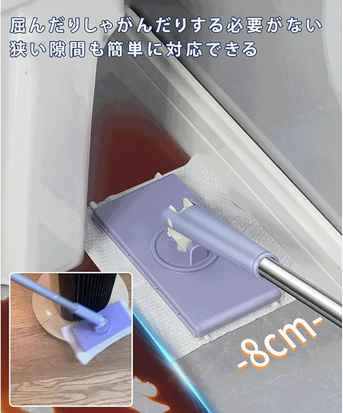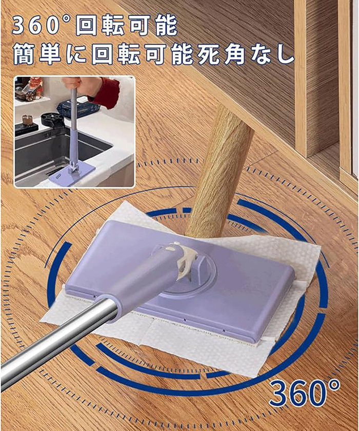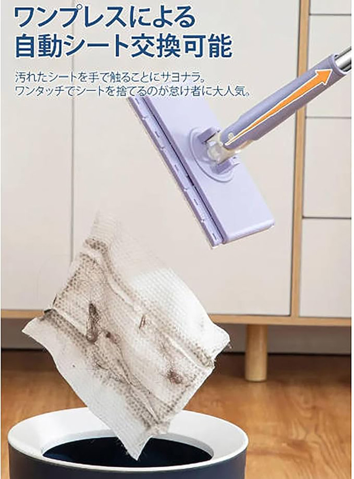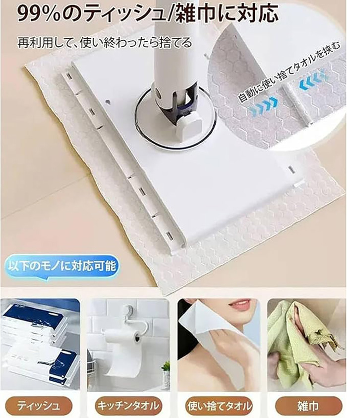 自動で雑巾を挟むモップ、ペーパータオル