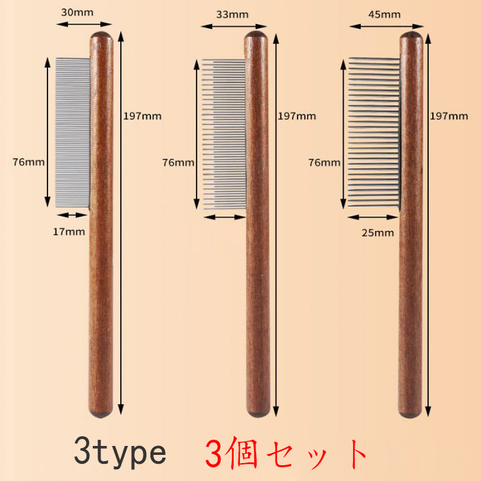 ペット コーム 3個セット 木製ペット