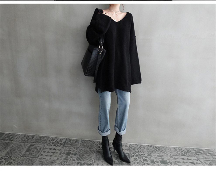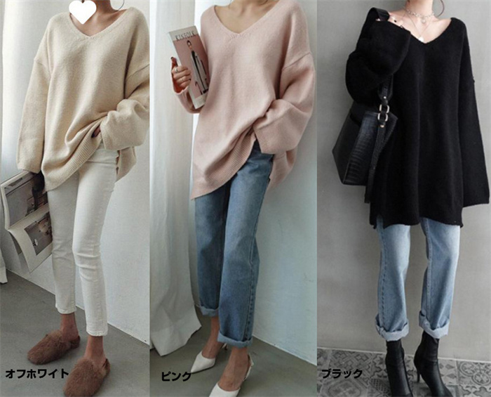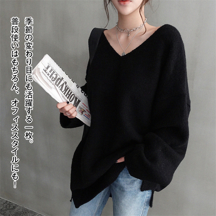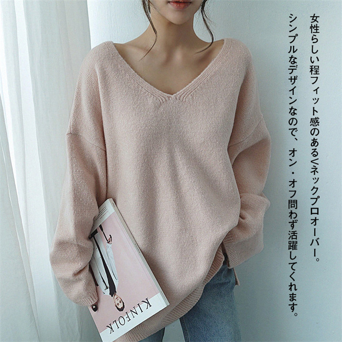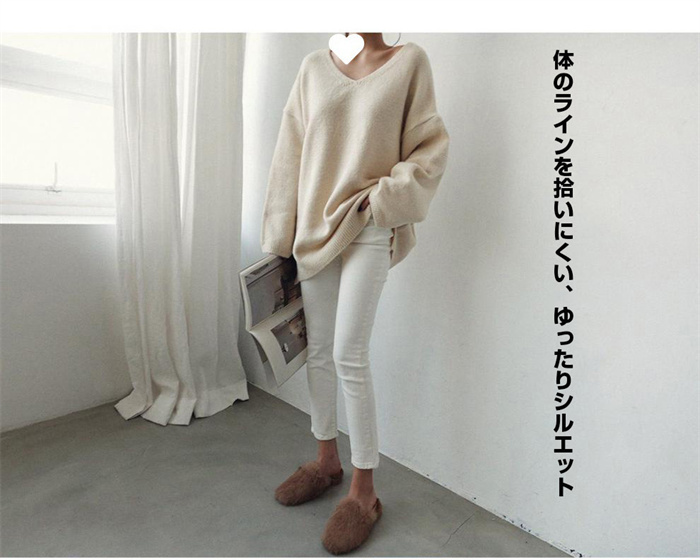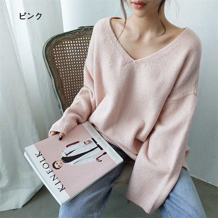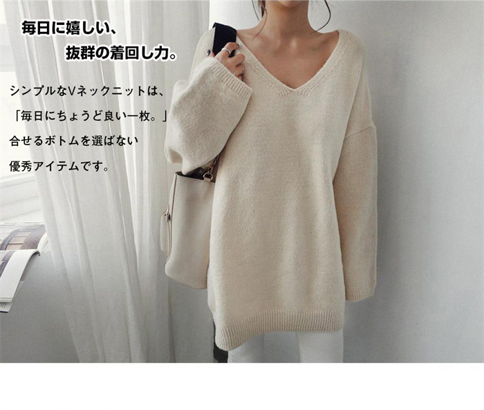 ゆるニット Vネック シンプル 無地