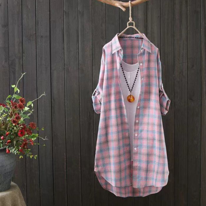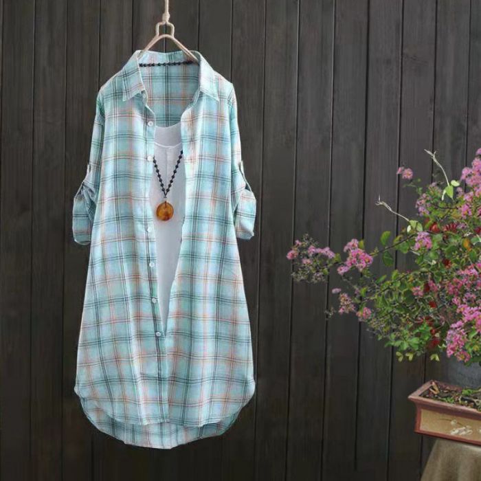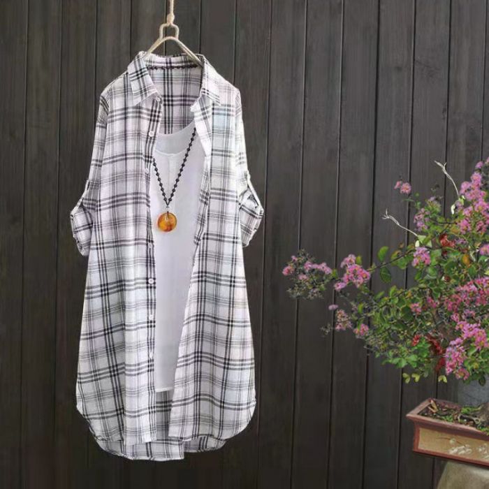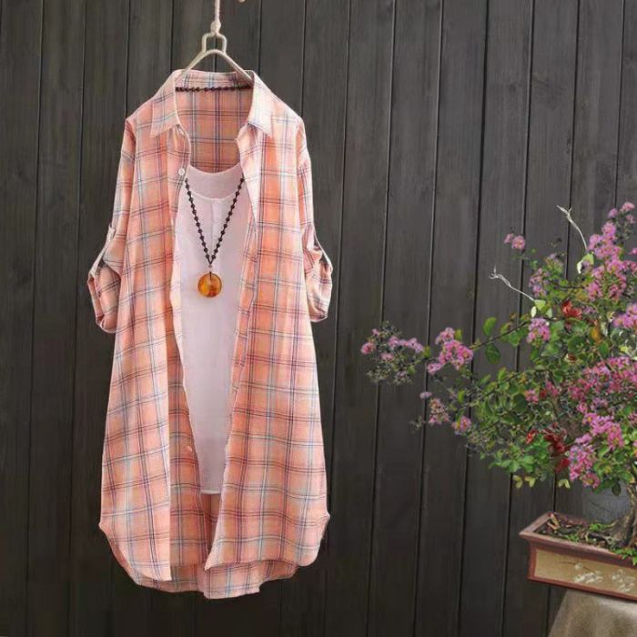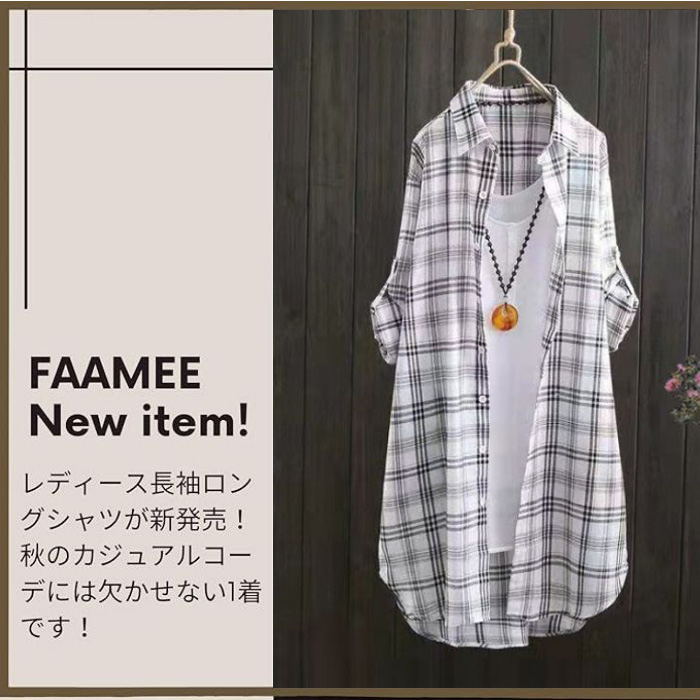 ロングシャツ 襟付きチェック 薄手シャ