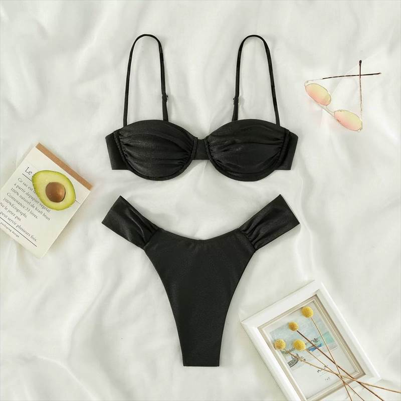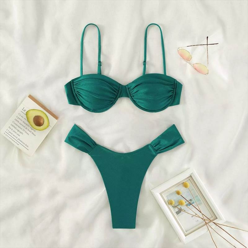 レディース 水着 ビキニ水着 パッドあり 三角 無地 2点セット 胸元 谷間 谷間魅せ かわいい 大人可愛い きれいめ シンプル ナチュラル 華やか 大人 大人っぽい レトロ おしゃれ お洒落