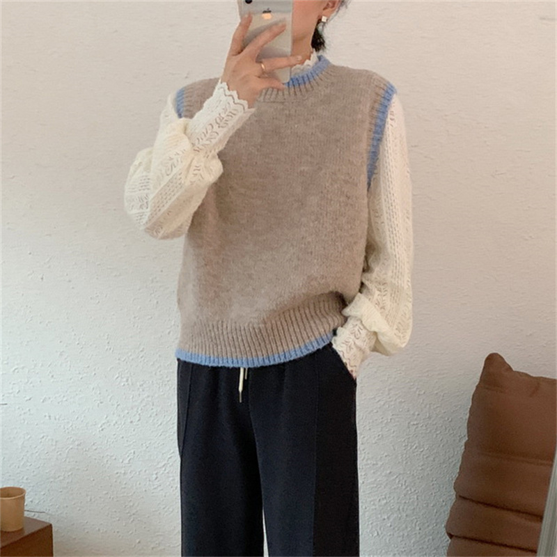 秋冬 クルーネック 重ね着トップスノー