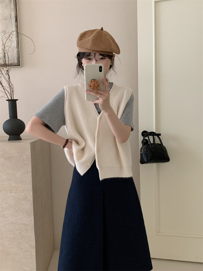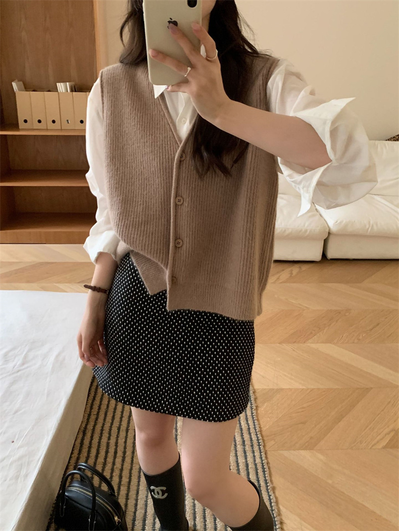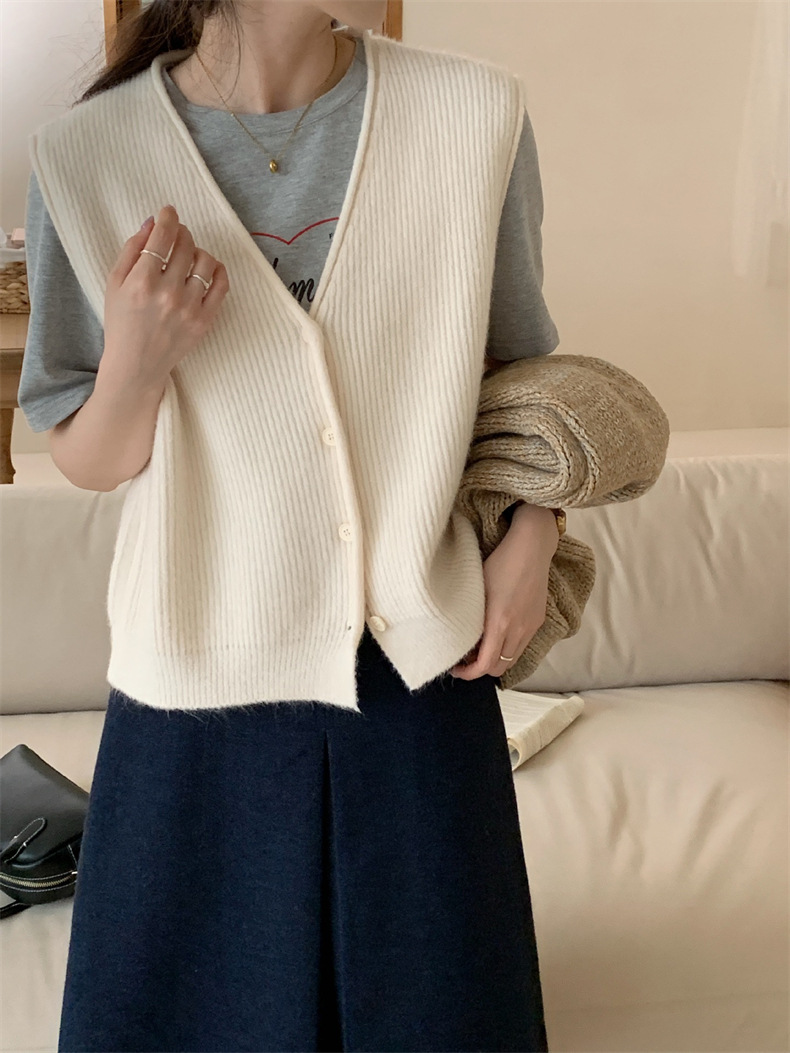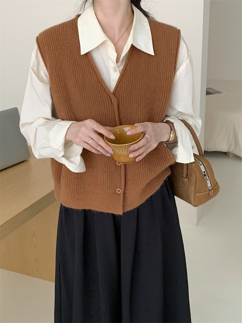 秋冬 ニット Vネック 前開き レイヤ