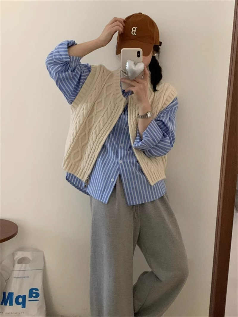 ニットベスト ベスト 秋 コーデ 前開
