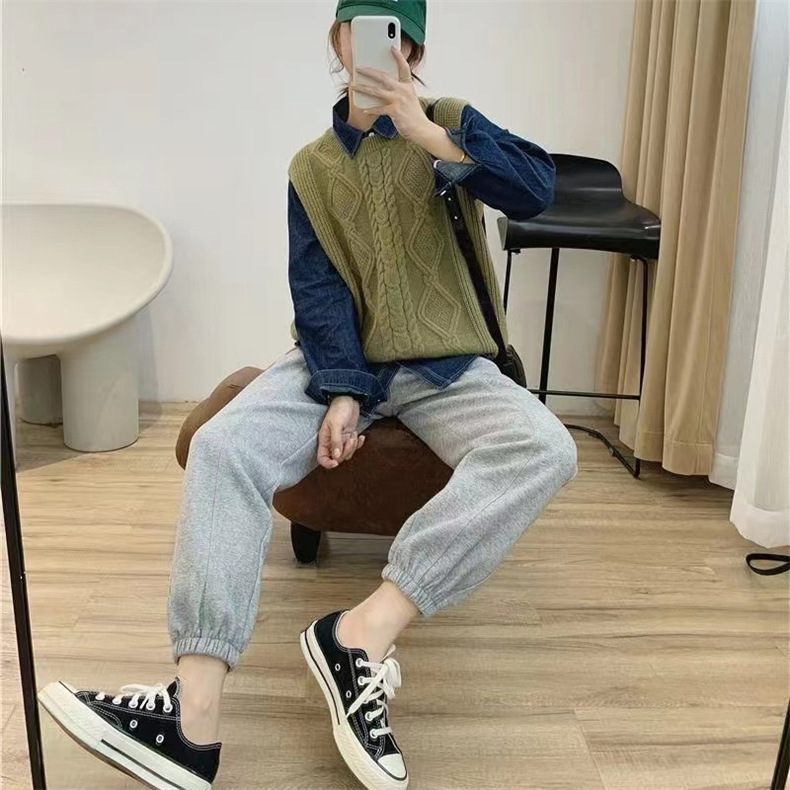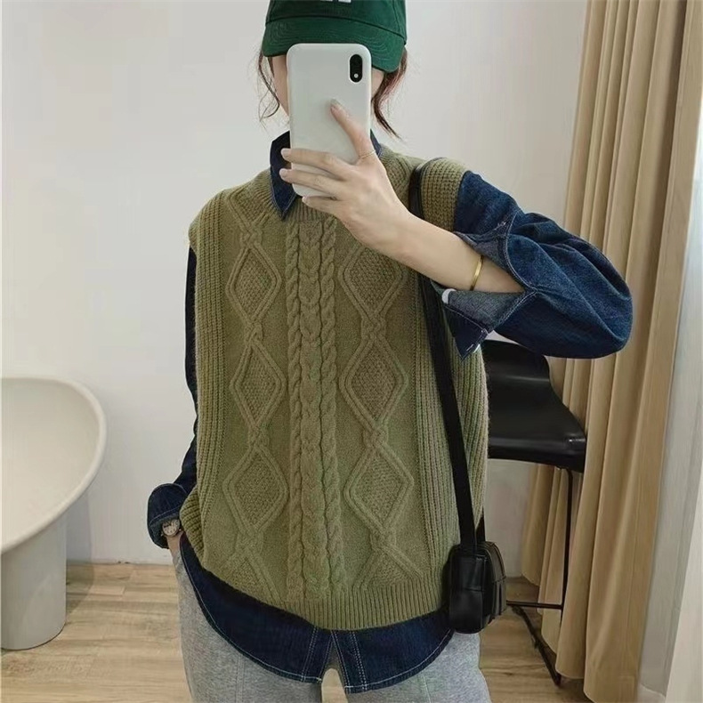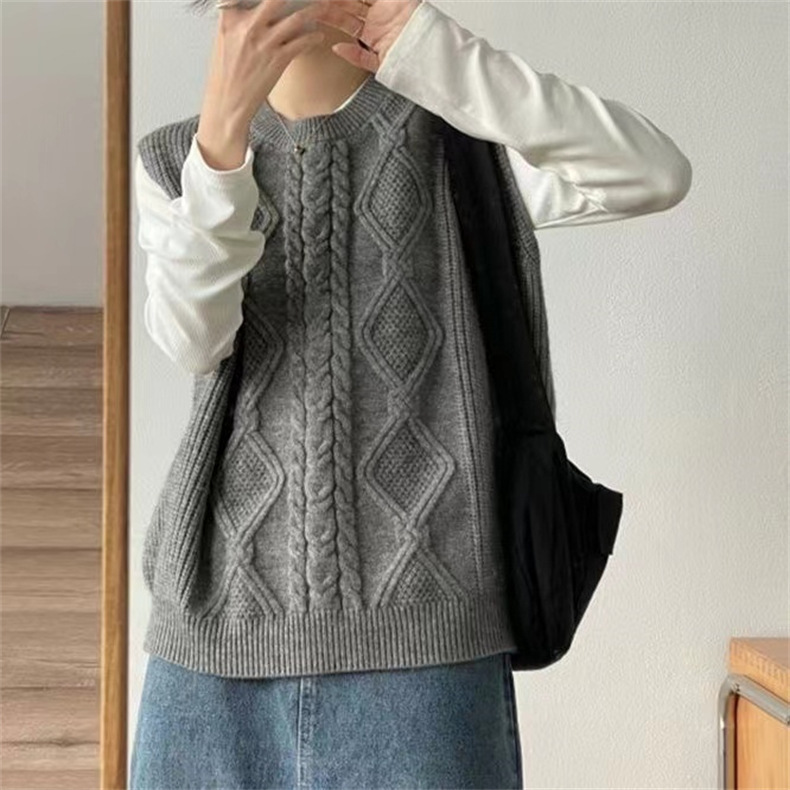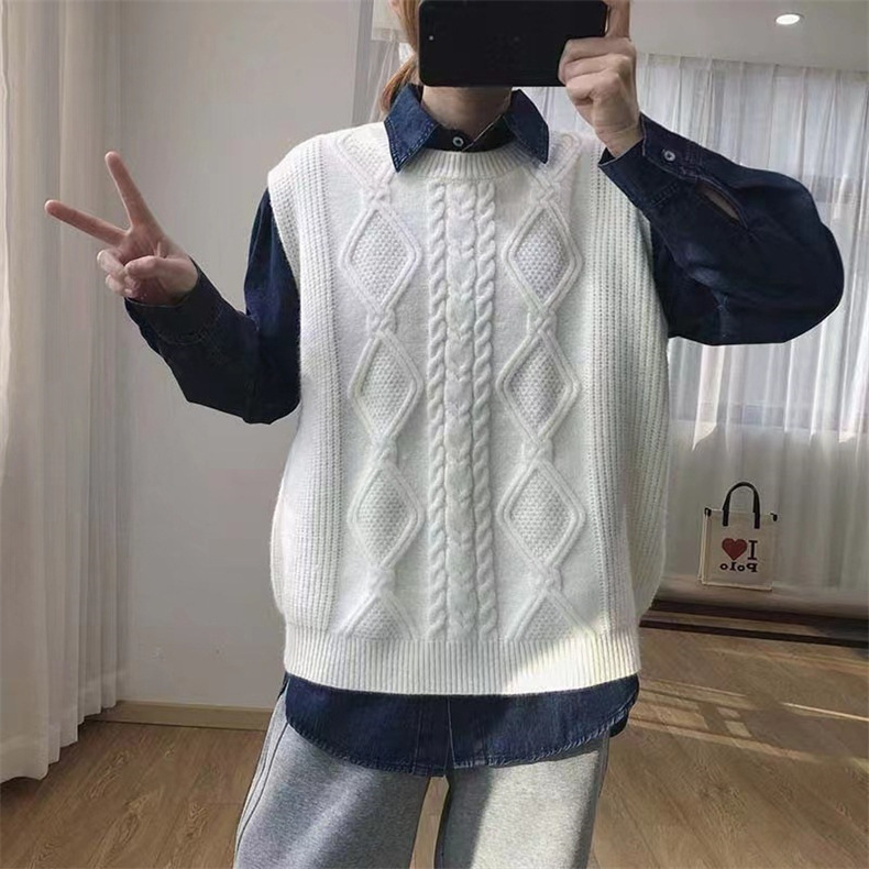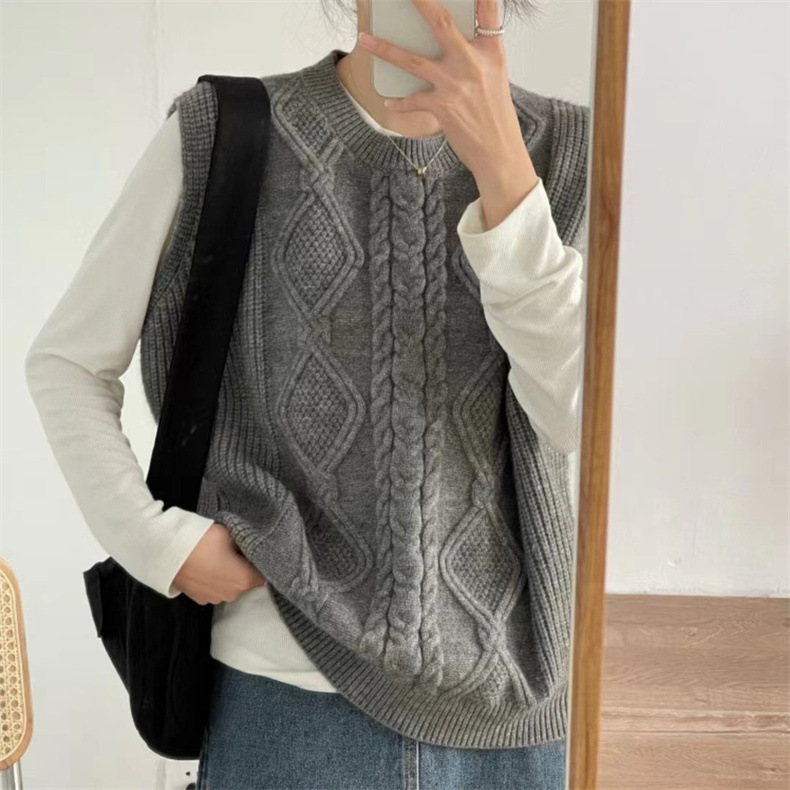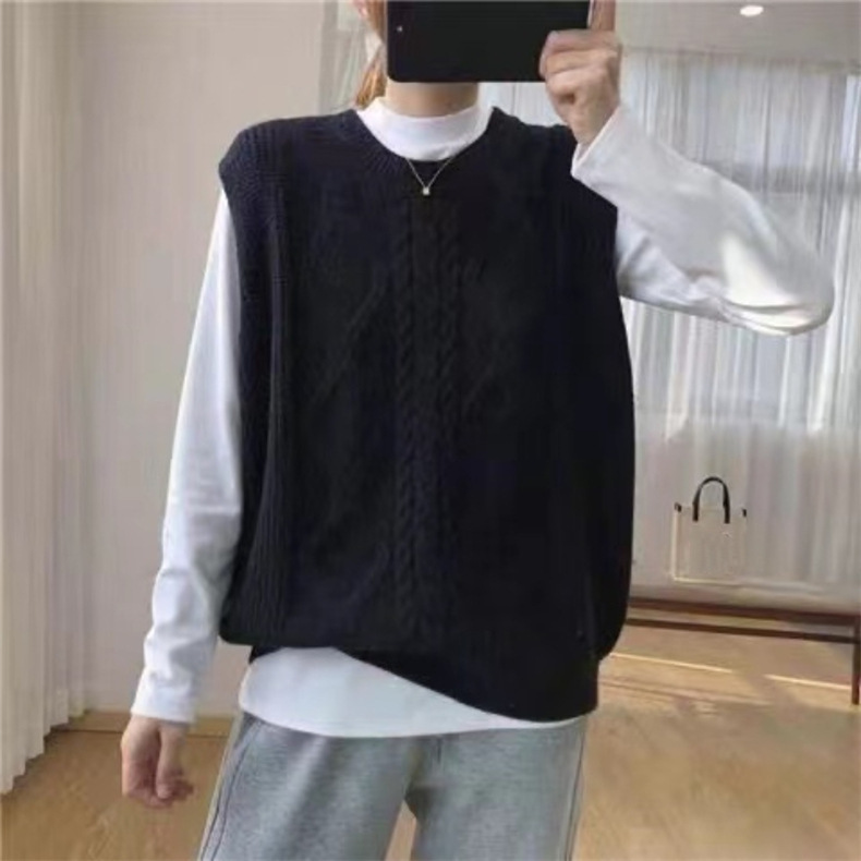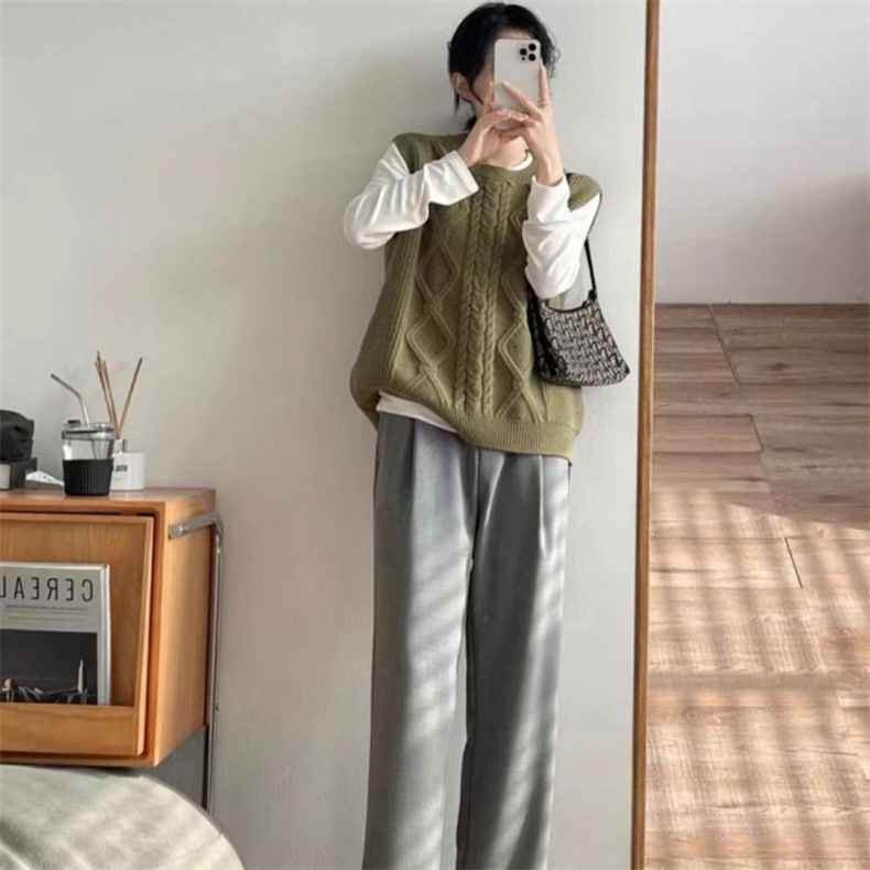 秋冬 ケーブル編み クルーネック重ね着