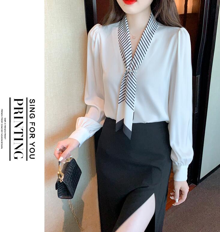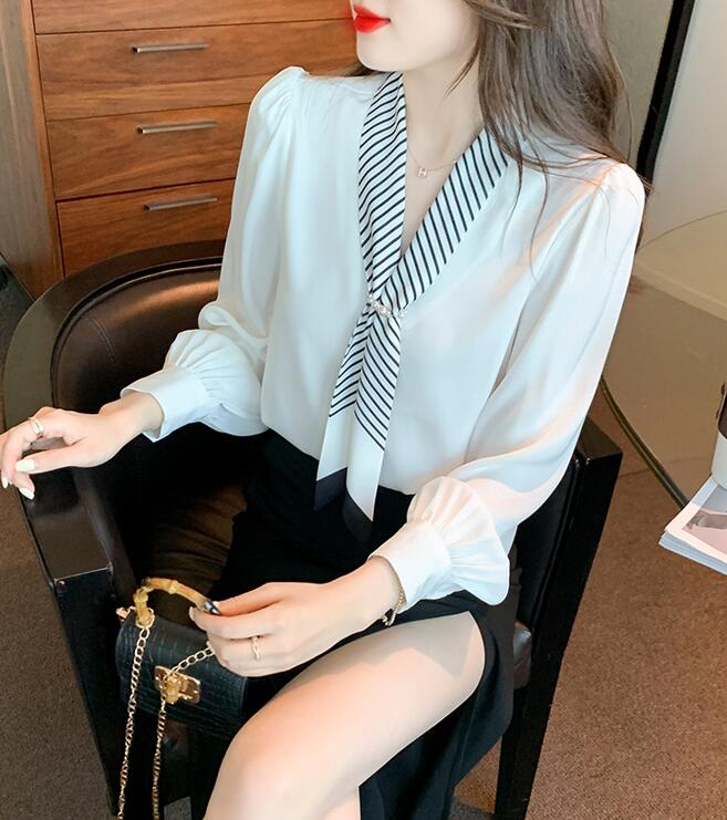 ブラウスレディースボウタイシャツシフォ