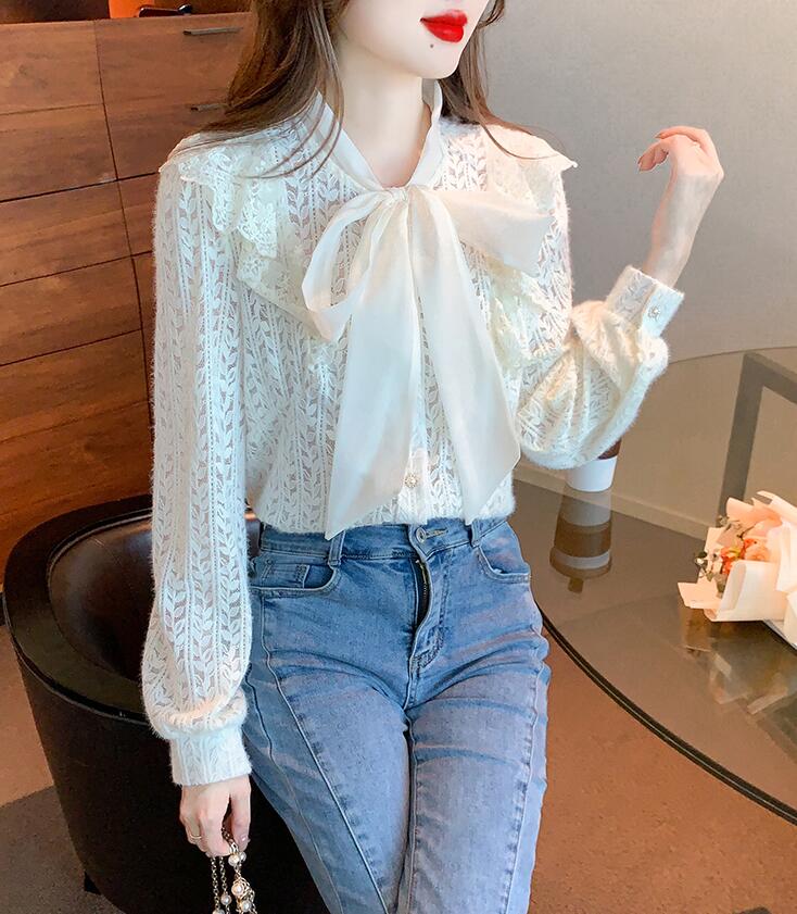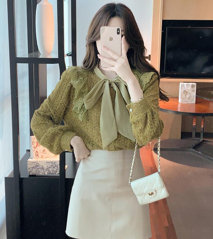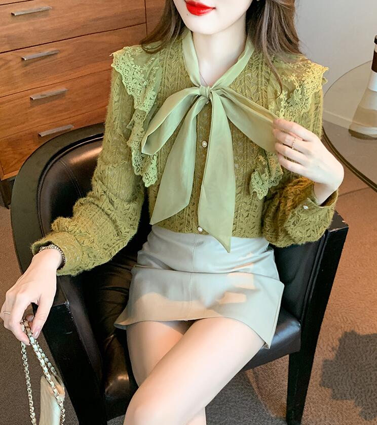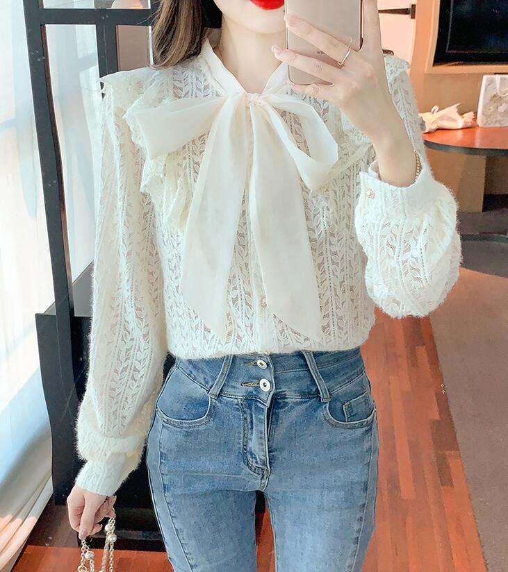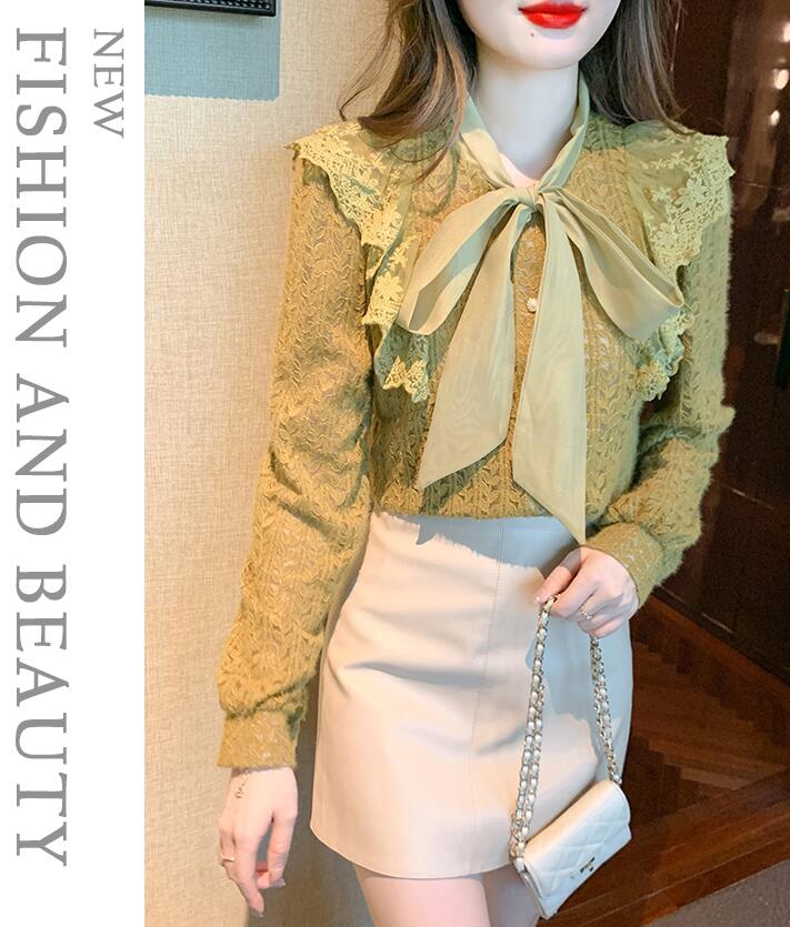 シアースリーブ ドッキングシャツ ボウタイシャツブラウス