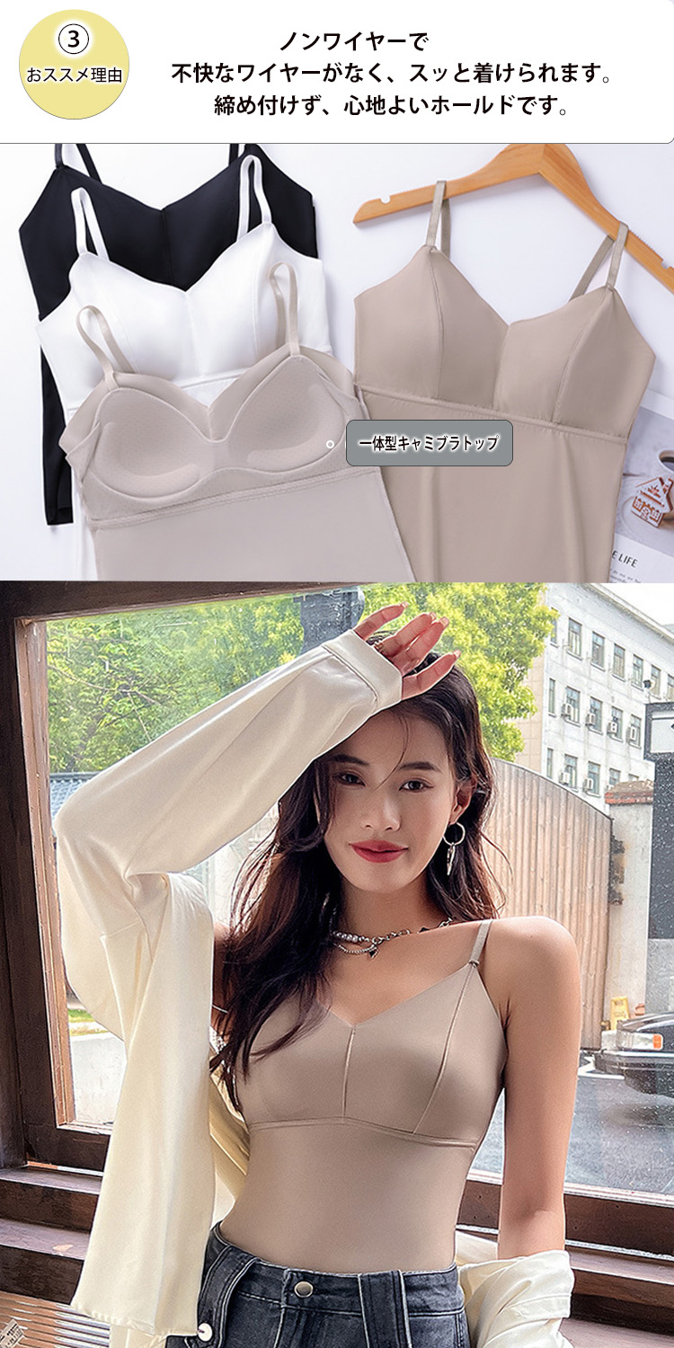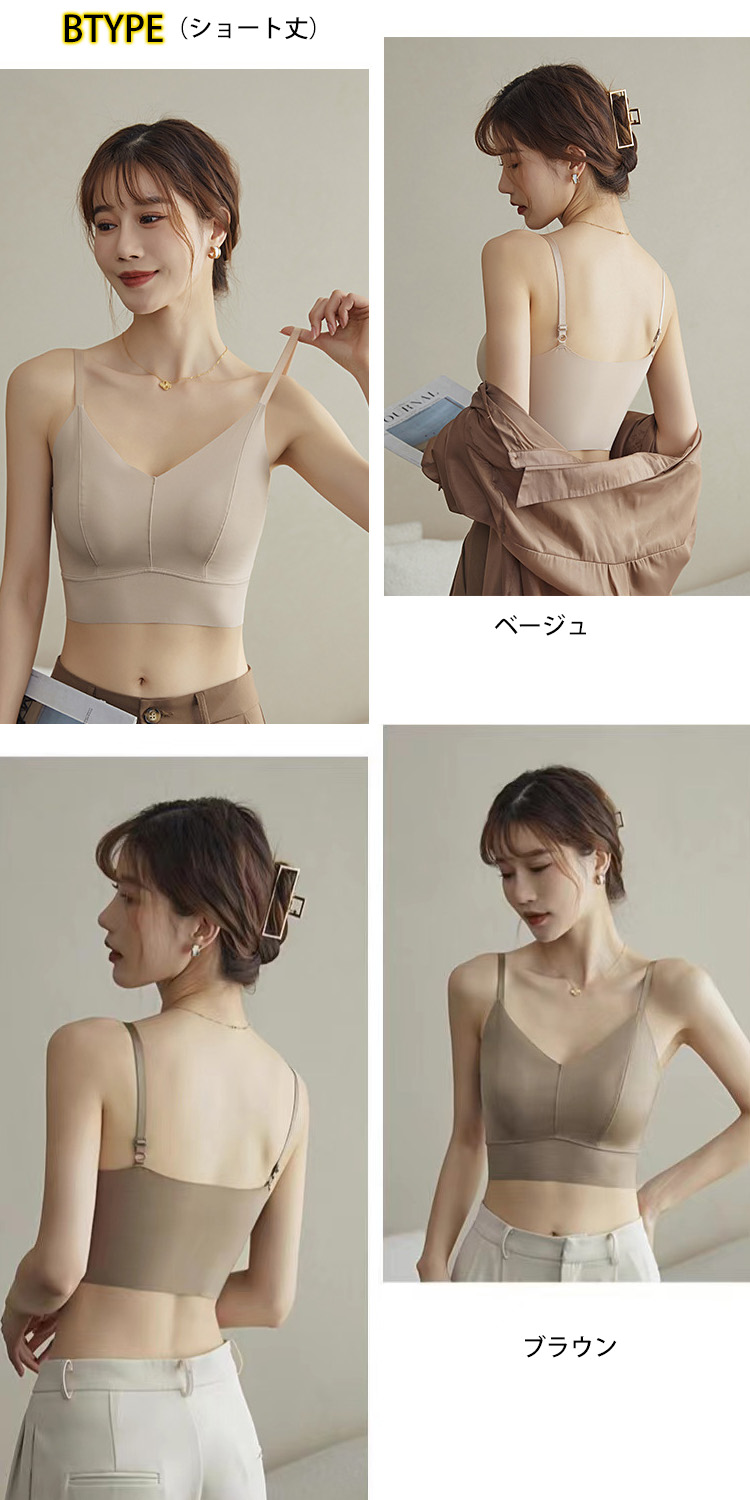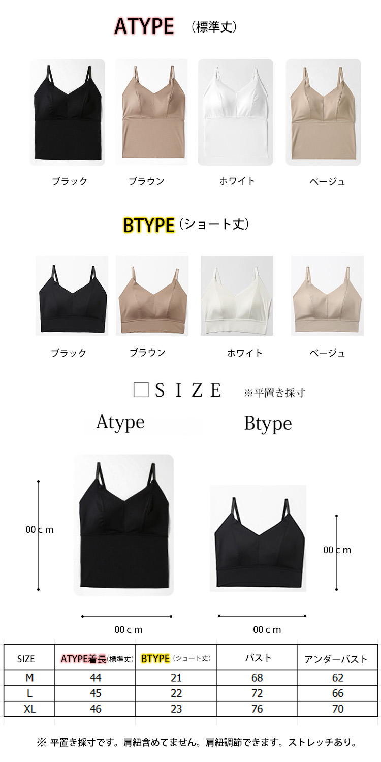 ■選べる丈感-らくちんなパット一体型キャミブラトップ■