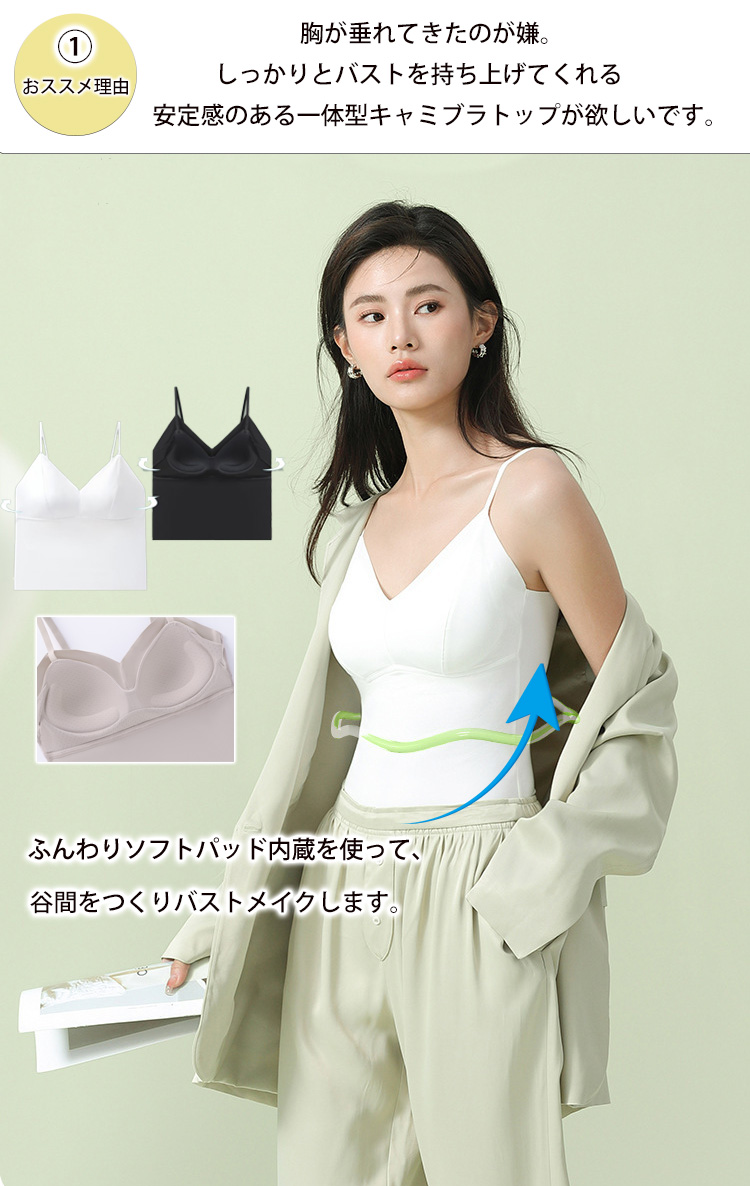 選べる丈感 キャミブラトップ パッド一体型 冷感 ブラトップ ショート丈 ロング丈 インナー パッド付き 美しく盛れる 楽々 盛れる