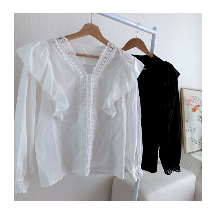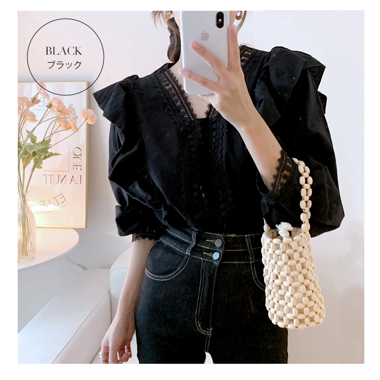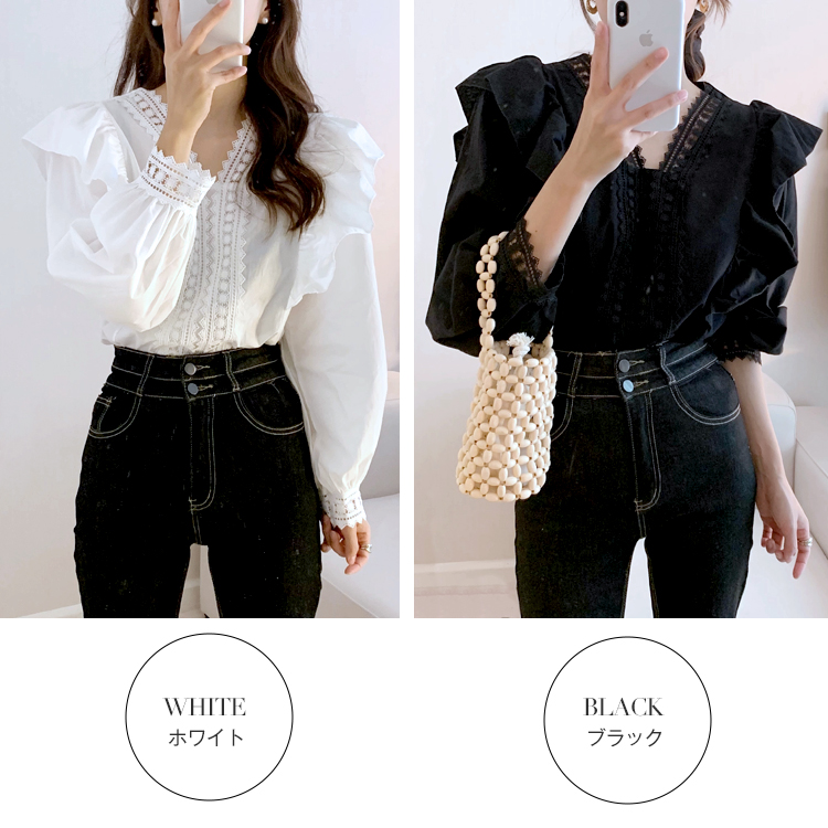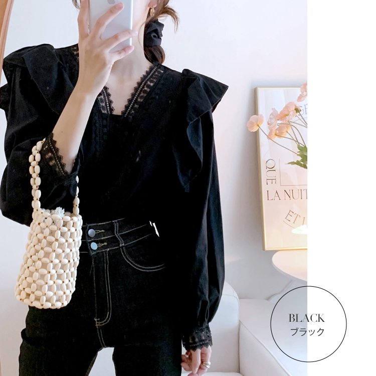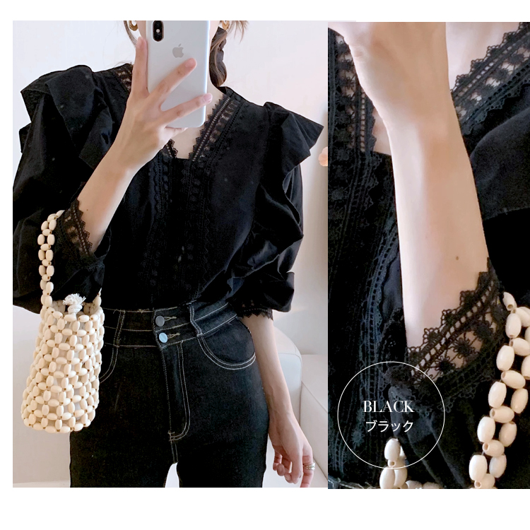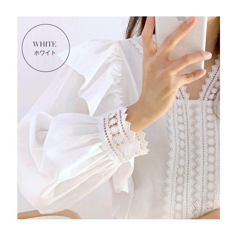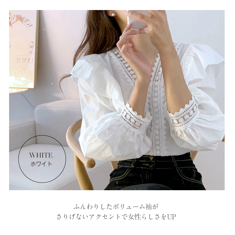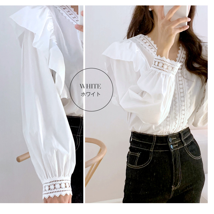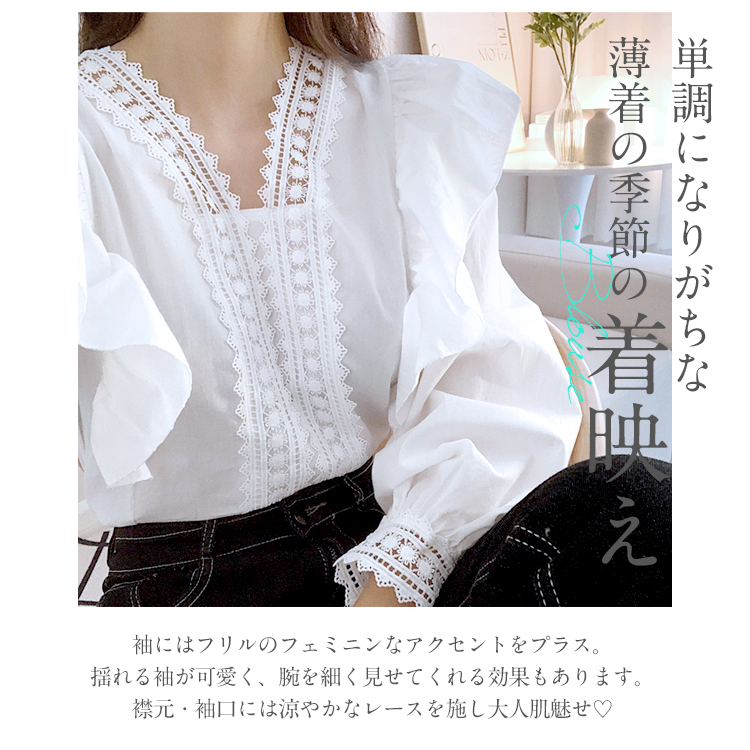 カジュアルになりすぎない フェミニン クラシカル レース フリル長袖ブラウスレディースファッション トップス シャツ ブラウス