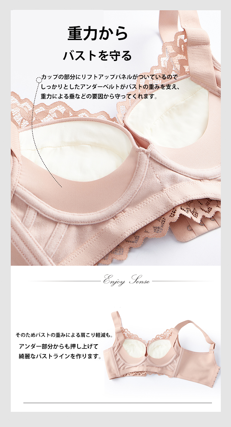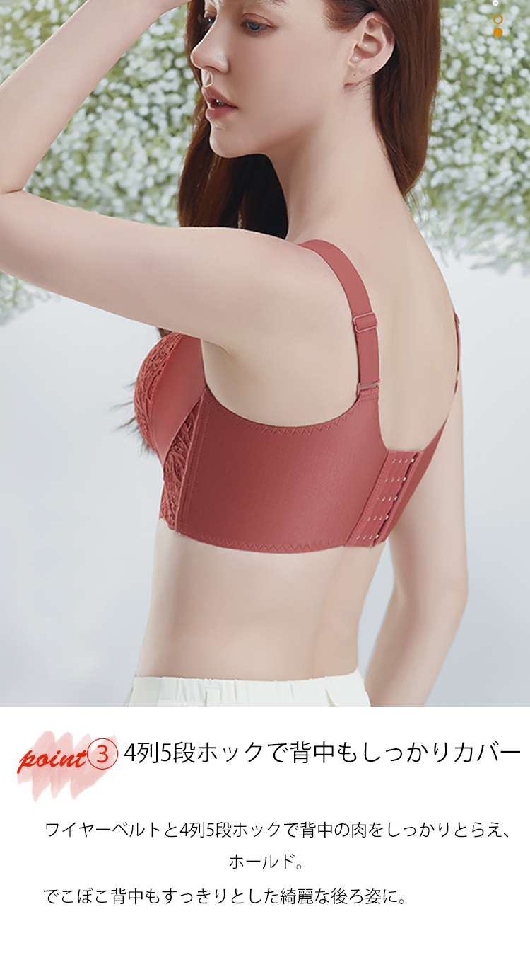 脇高 補正 ノンワイヤー ブラ レース 小胸 やわらか 美胸 補正ブラ 5段ホック 谷間 しっかり 盛れる 寄せる やわらか ノンワイヤー ブラ 谷間メイク