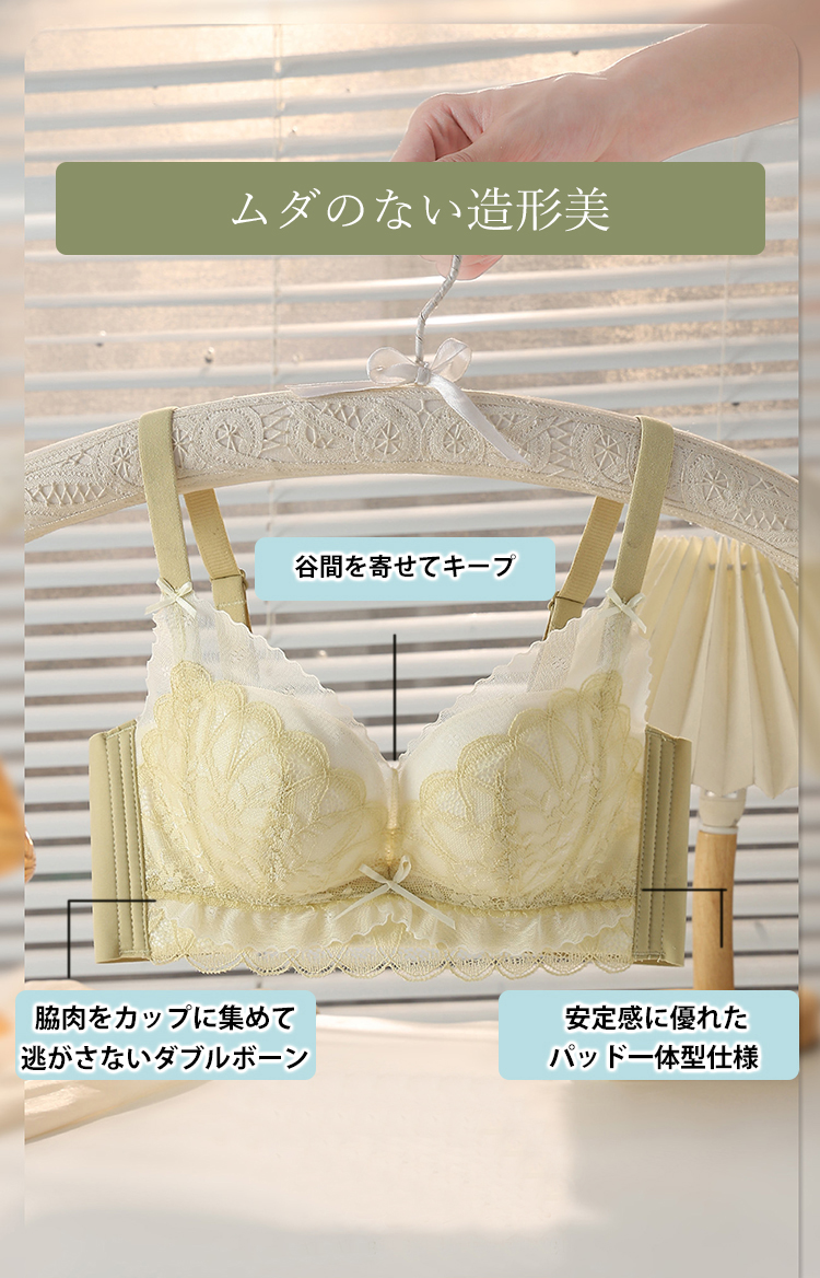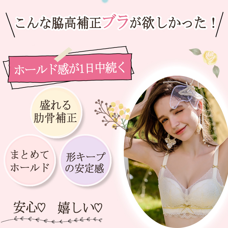 脇高 補正 ブラ ノンワイヤー ブラ 育乳ブラ レース 刺繍 花 しっかり やわらか 美胸 補正ブラ 単品 リフトアップ ブラジャーのみ 4段ホック 谷間 やわらか