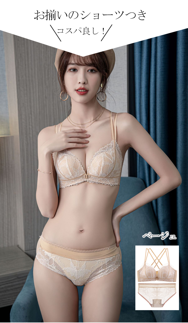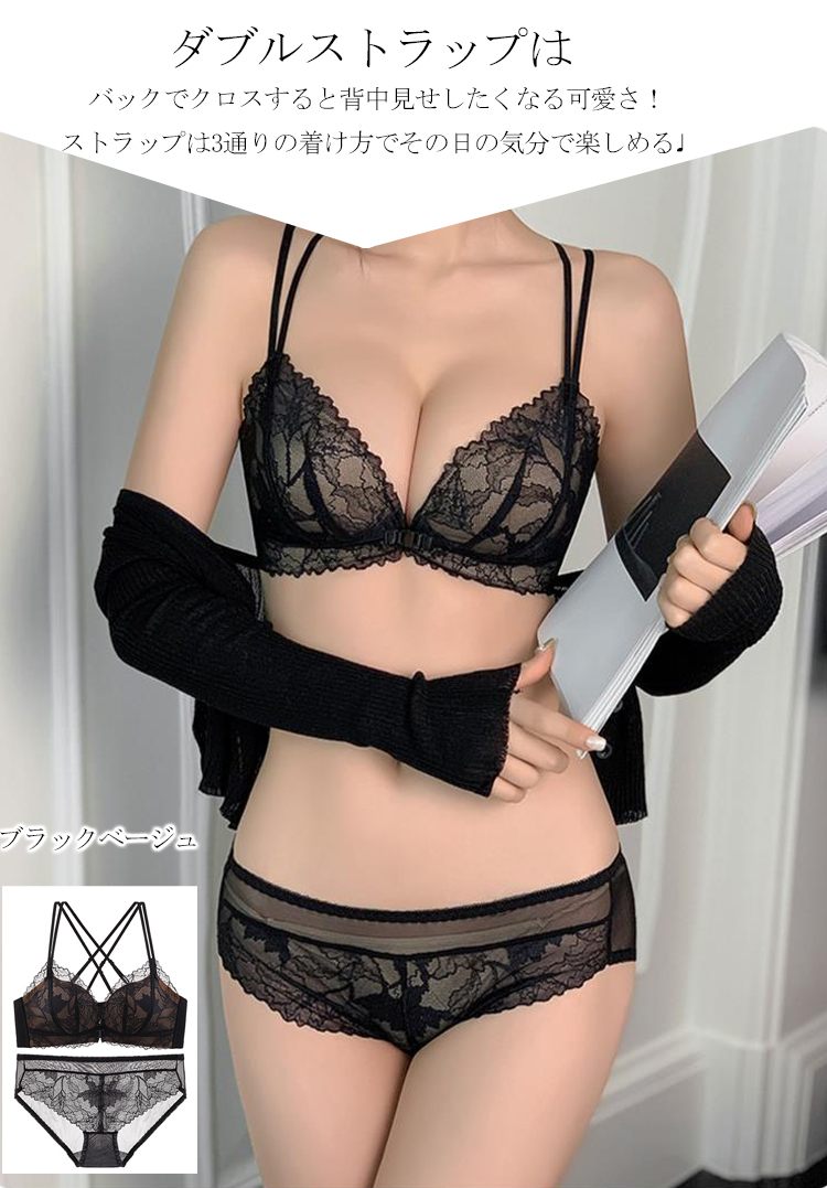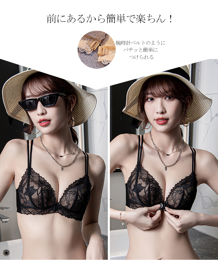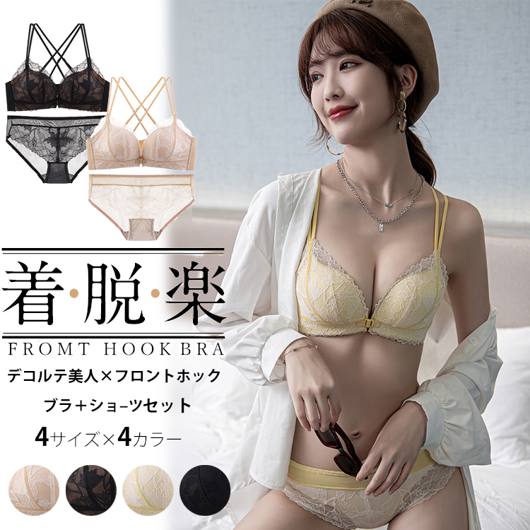 3way フロントホック ノンワイヤー ブラ 上下セット 脇高 補正 しっかり ダブルストラップ 前開きブラ 美胸 繊細刺繍 レース 谷間 ノンワイヤー ブラ 美胸 インナー ショーツ 上下セット