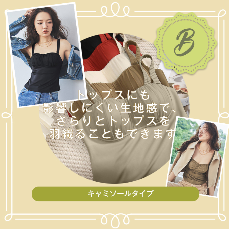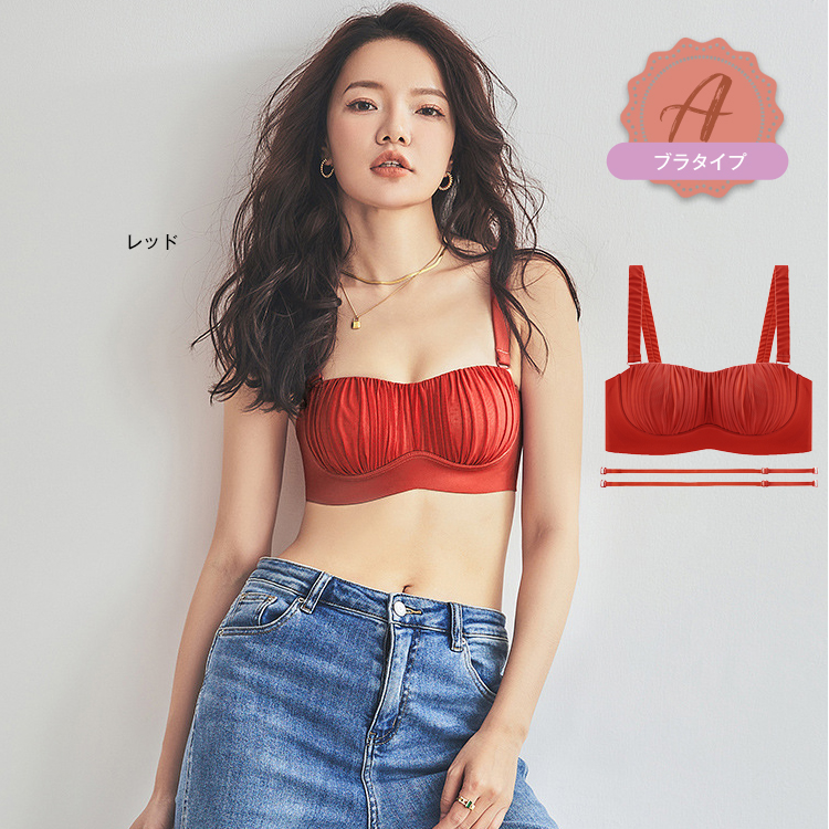 02: A:(ブラ)-アイボリー A:(ブラ)-カーキ A:(ブラ)-ブラウン A:(ブラ)-レッド A:(ブラ)-ブラック B:(キャミソール)-アイボリー B:(キャミソール)-カーキ B:(キャミソール)-ブラウン B:(キャミソール)-レッド B:(キャミソール)-ブラック