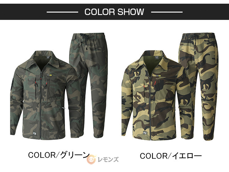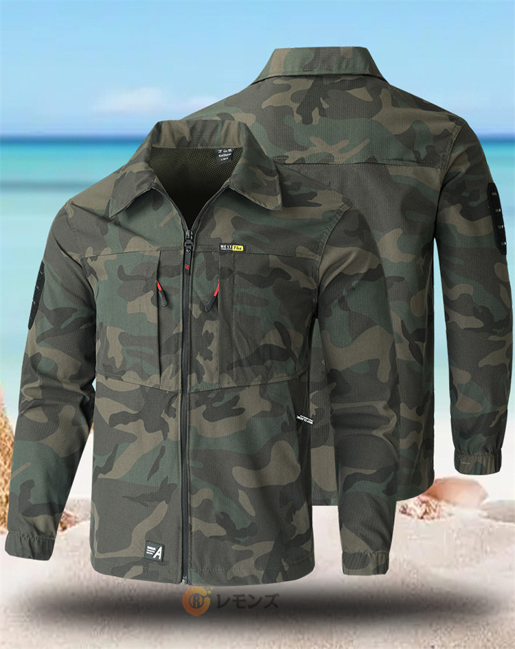 商品名 迷彩服 上下 メンズ セットアップ 上下セット 速乾 裏メッシュ 通気 迷彩柄 作業着 作業服 ミリタリー ジャケット ワークウエア サバイバルゲーム アウトドアウェア 農業 薄手 キャンプ 春服 秋服 メンズファッション