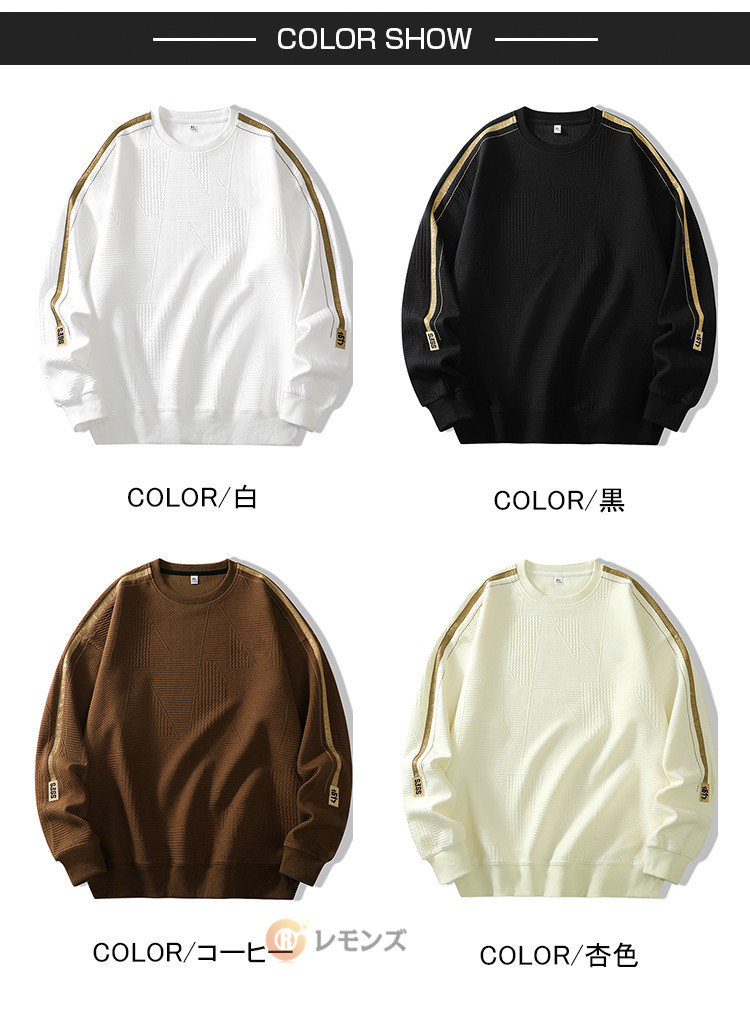 ※※ベルト、飾りやインナーなどは含みません。商品情報商品名 トレーナー メンズ スウェット 長袖 トレーナー プルオーバー メンズトップス フードなし ストリート スウェットトレーナー ゆったり アメカジ おしゃれ オシャレ 大人 20代 30代 40代 50代 春 秋 冬 白 黒素材 ポリエステル98% ポリウレタン2%カラー M|L|XL|2XL|3XLサイズ 各サイズの寸法については画像のサイズ表にご参照ください。生産国 中国包装について 環境保護の観点から、「簡易包装」を推進しております明細書について 当店ではエコロジーと個人情報流出防止のため、ご指示の無い限り明細書を発行しておりません。