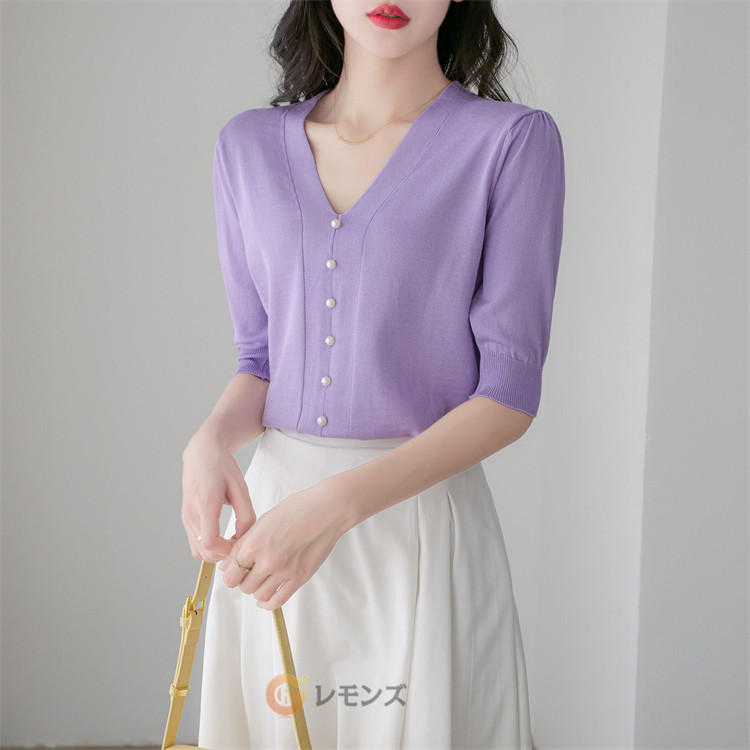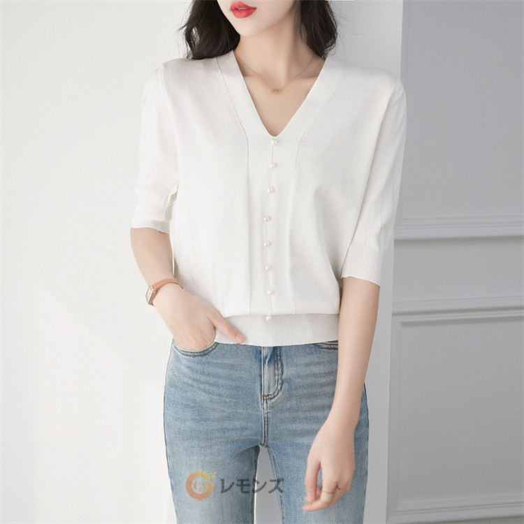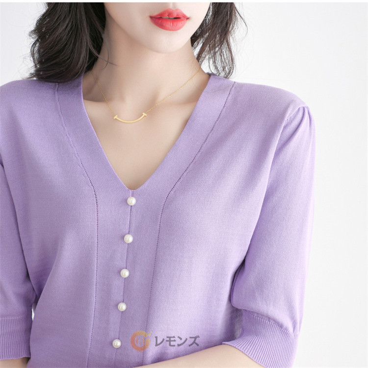 商品名 半袖ニット ニットtシャツ レディース サマーニット Vネック ニットtシャツ カットソー 半袖tシャツ 半袖 サマーセーター 無地 通勤 普段着 ビジネス カジュアル 春 夏 レディースファッション 通学 OL インナー ゴルフ 普段着 オフィス