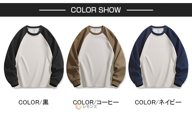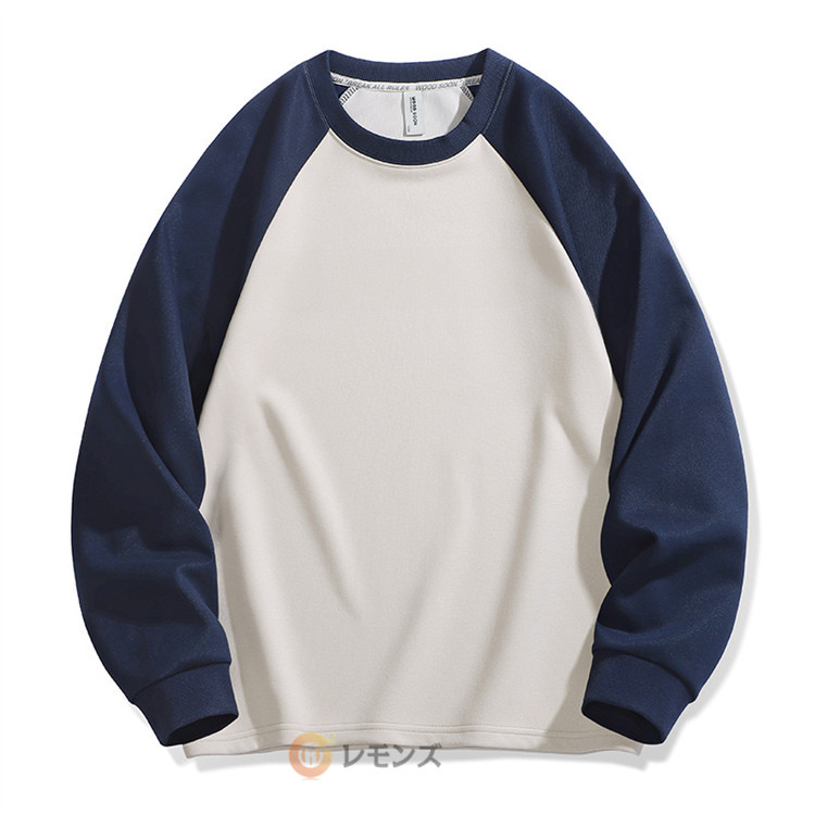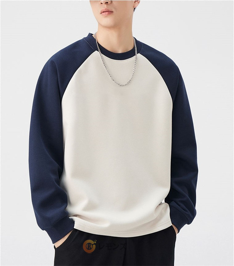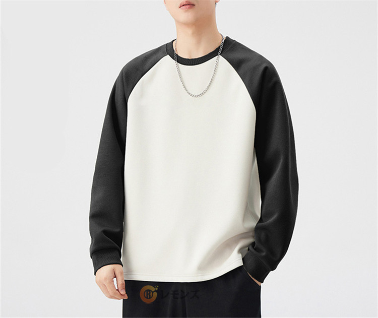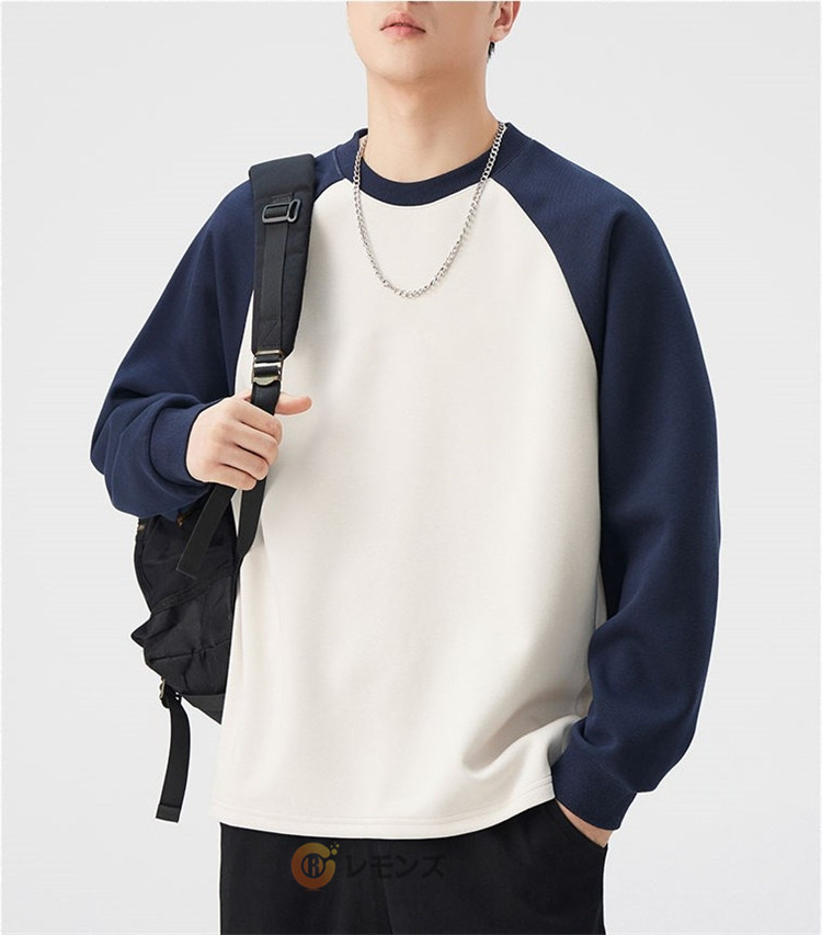 商品名 トレーナー メンズ クルーネック 長袖 スウェット レディース ラグランスリーブ トレーナー 配色 切り替え トップス 薄手 長袖トレーナー スリム おしゃれ スポーティ カジュアル 部屋着 プルオーバー ロンT 秋 秋