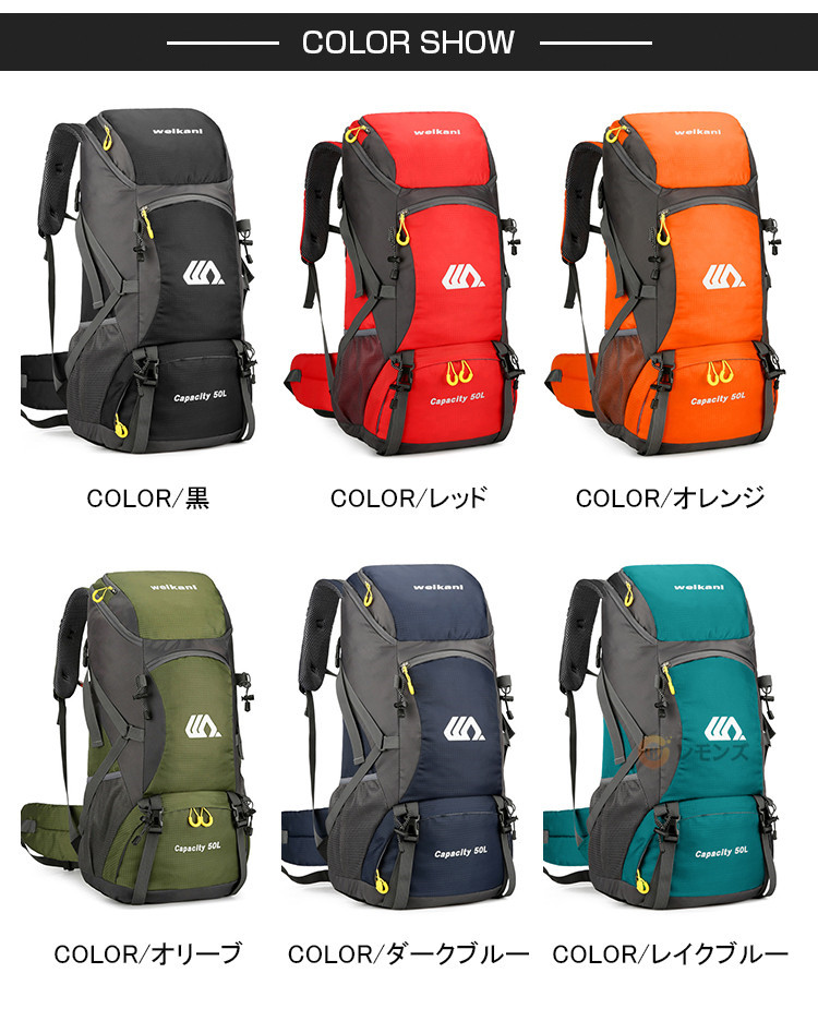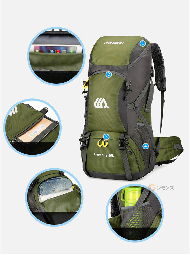商品名 バックパック リュック 大容量 リュックサック メンズ レディース 50L 防災 リュック アウトドア 防水 登山リュック 遠足 旅行 出張 カバン 多機能 ティパック リュック プレゼント トレッキング ギフト 男女兼用 メンズ ザック