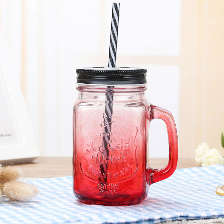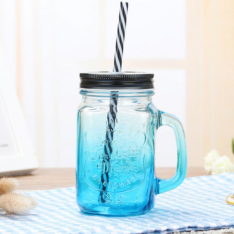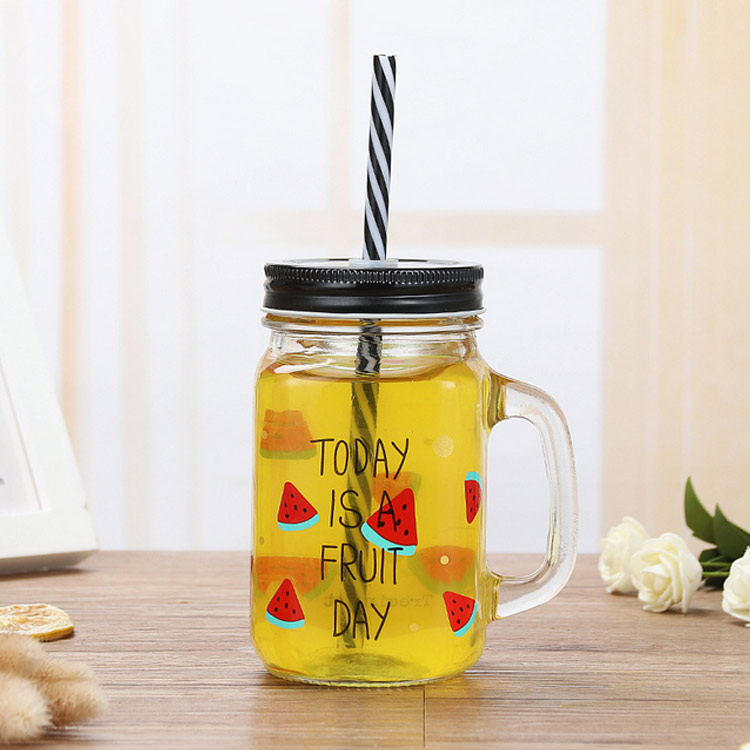 ガラス製 ドリンクジャー 455ml ストロー付き