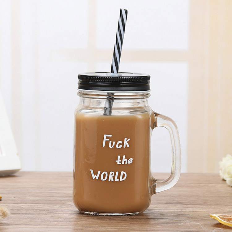 タピオカドリンク ストロー穴付き ガラス保存瓶 ストローは取り出し可能キッチン用品 食器 調理器具 コーヒー お茶用品 マグカップ ティーカップ コーヒーカップ