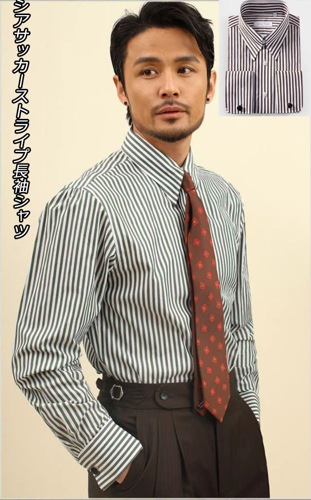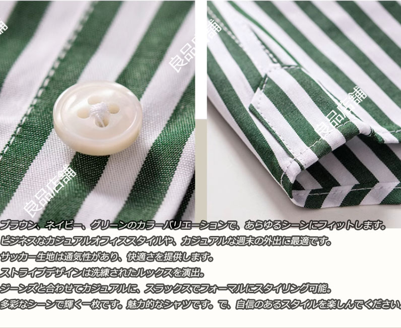 シアサッカーストライプ長袖シャツ ストライプデザイン 長袖 スリム ボタンダウン yシャツメンズお洒落シャツ シャレシャツ 仕事着 スーツ 春服 春物 インナー メンズワイシャツスリム