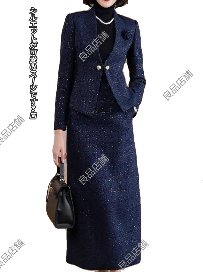 スカート ロング丈 フォーマルジャケット トールサイズ 同窓会 舞台 ジャケット ビジネス セミフォーマル スーツセット エレガント ママ 大人 M~4XL ビジネススーツ 1つボタン