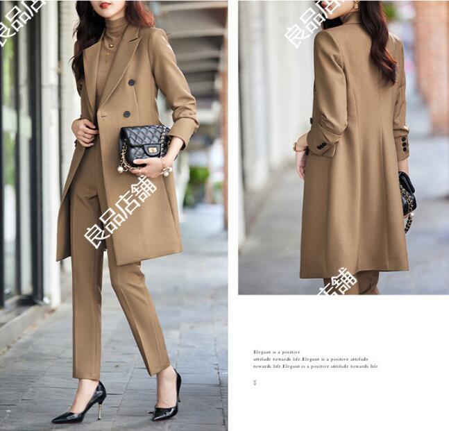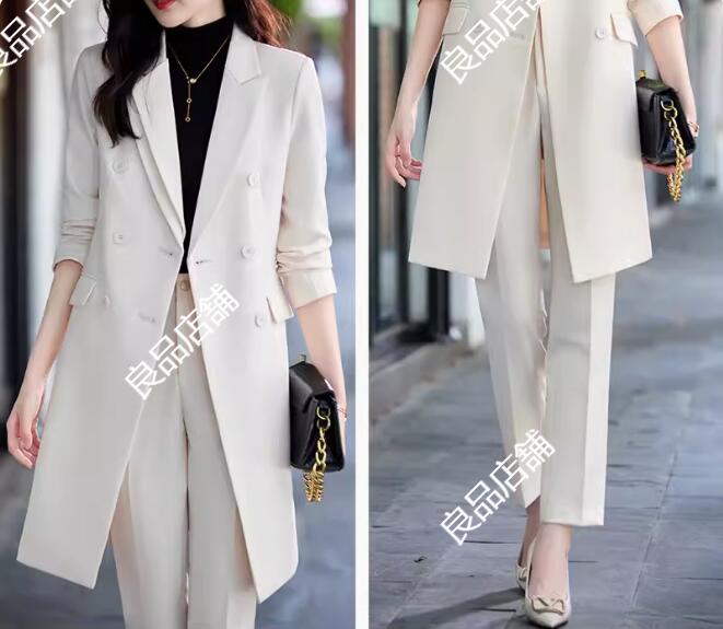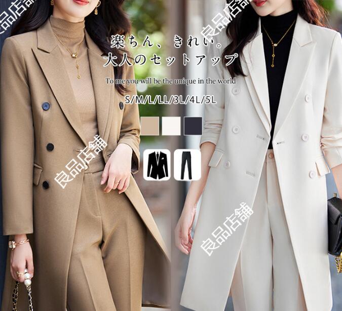 4色 無地 ロングジャケット+パンツスーツ パンツスーツ セットアップ フォーマルスーツ ビジネススーツ ママスーツ レディーススーツ 卒業式スーツ 細見え 視覚着痩せ、スタイルアップ