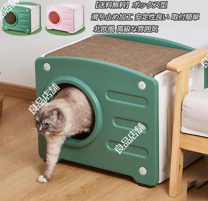 ボックス型猫ハウス 猫小屋 段ボール 猫スクラッチボド 研削爪 猫ペット キャットダンボールハウス 猫用爪とぎ ペットハウス 通気 爪とぎ兼ベッド 爪研ぎハウス 多頭飼い 取付簡単