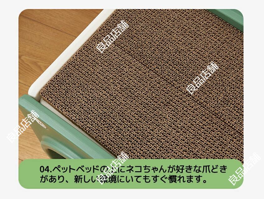 ペットベッドの上にネコちゃんが好きな爪どきがあり、新しい環境にいてもすぐ慣れます。