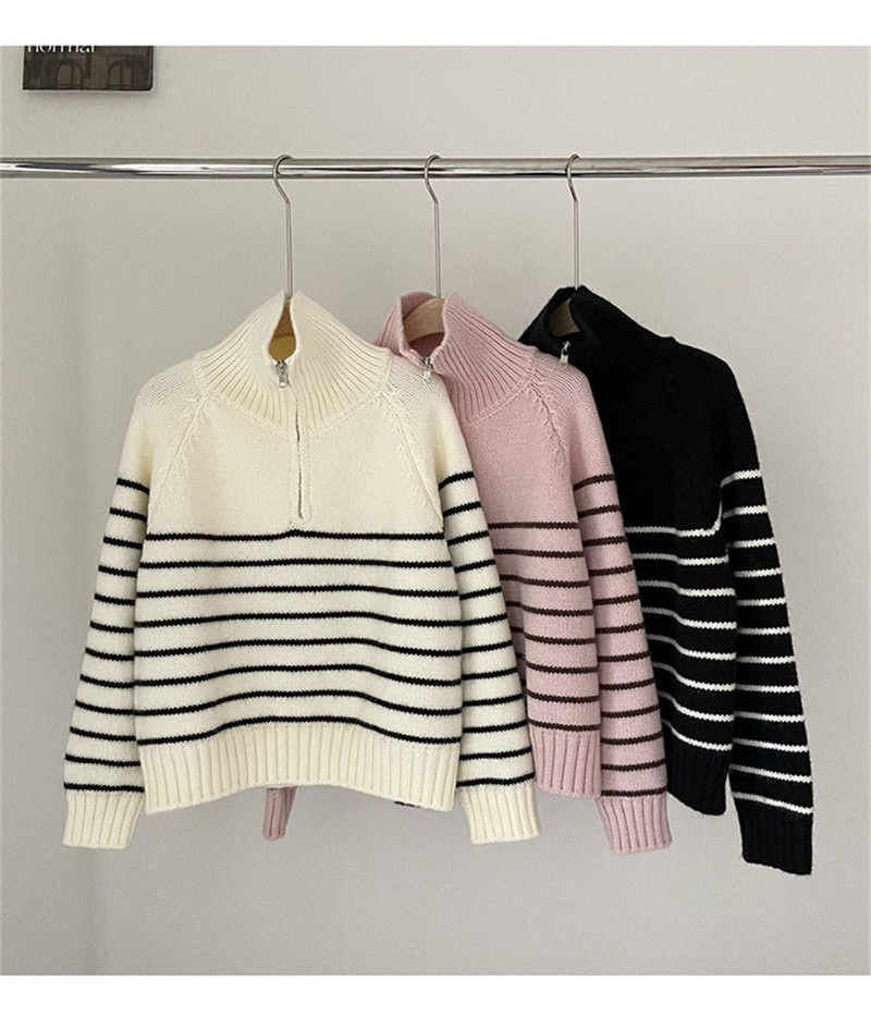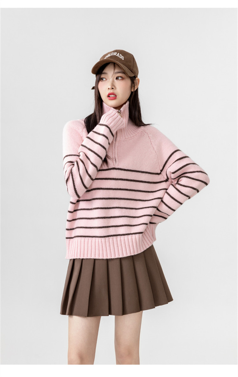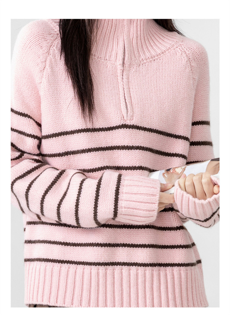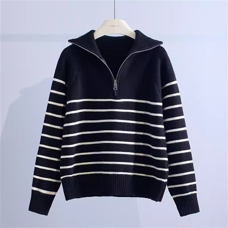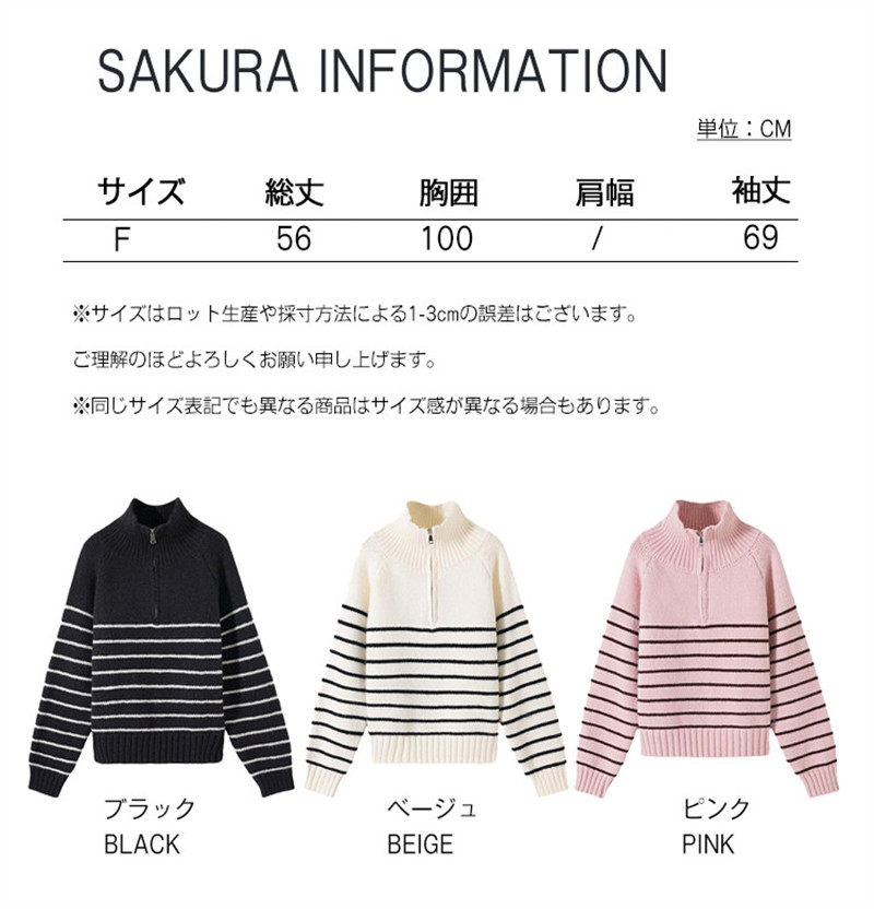 ニット レディース トップス セーター プルオーバー 大きいサイズ 秋冬 ゆったり ハーフジップ シルエット 長め タートルネック ハイネック 長袖 ボーダー