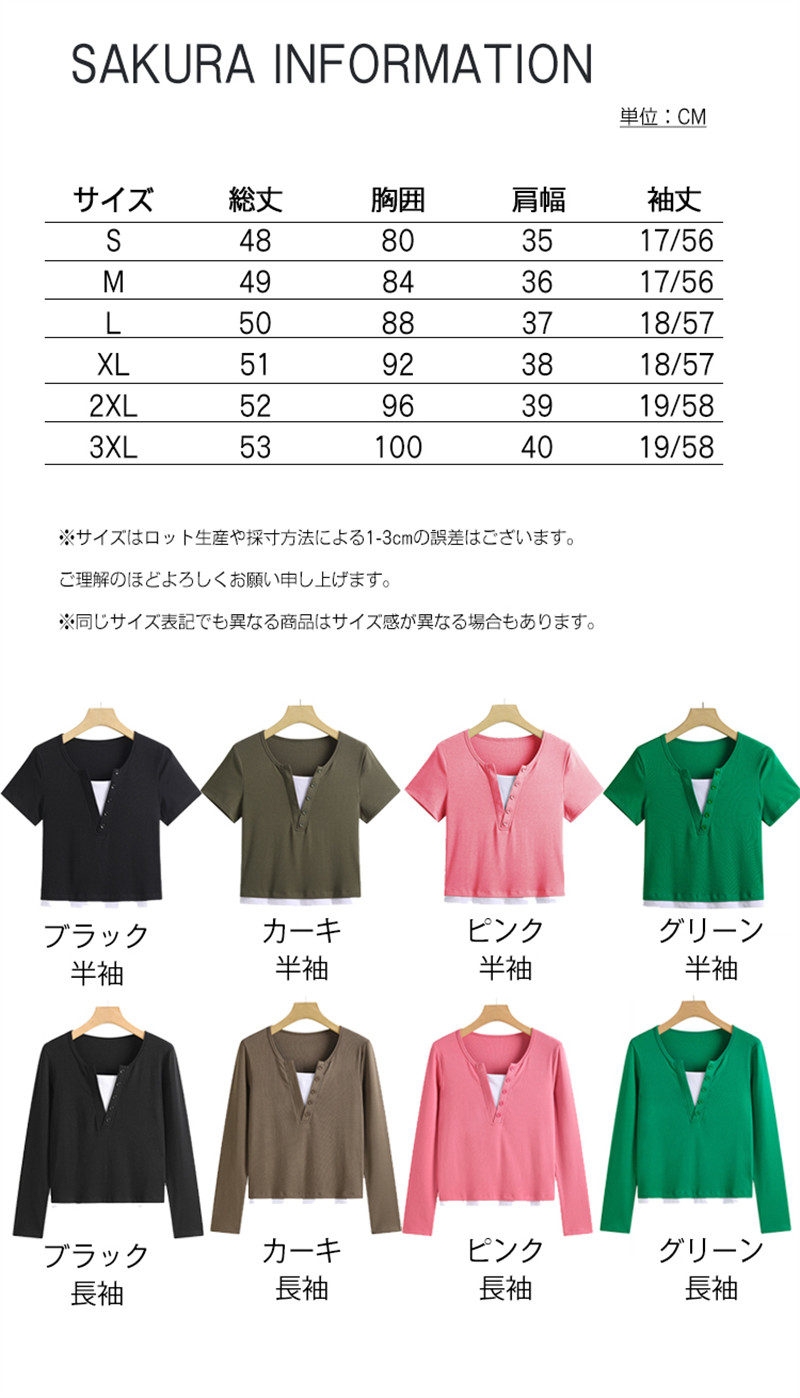 カラー: ブラック半袖 カーキ半袖 ピンク半袖 グリーン半袖 ブラック長袖 カーキ長袖 ピンク長袖 グリーン長袖