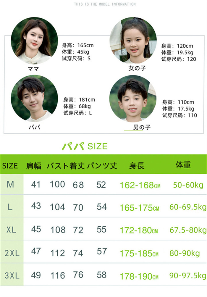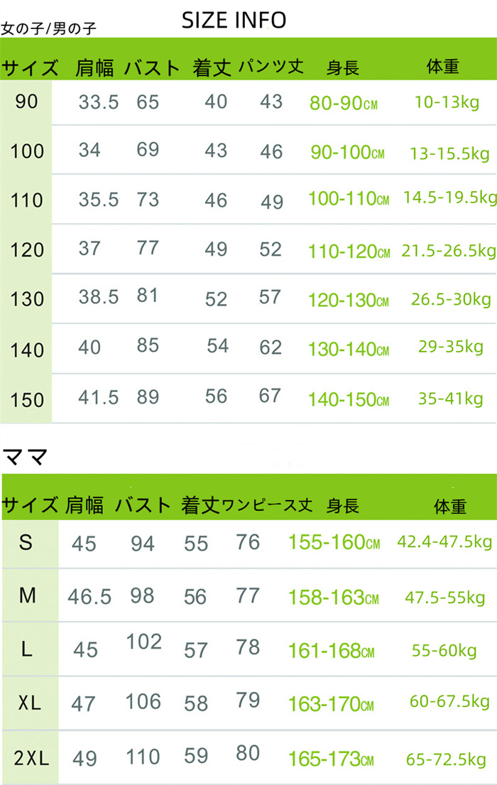 タイプ: 女の子(トップス+パンツ) 男の子(トップス+パンツ) ママ(トップス+スカート) パパ(トップス+パンツ)