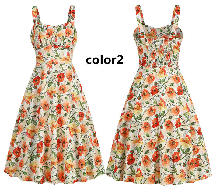 レトロワンピース 5色お揃い スイング
