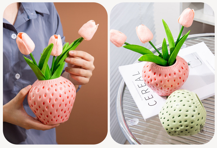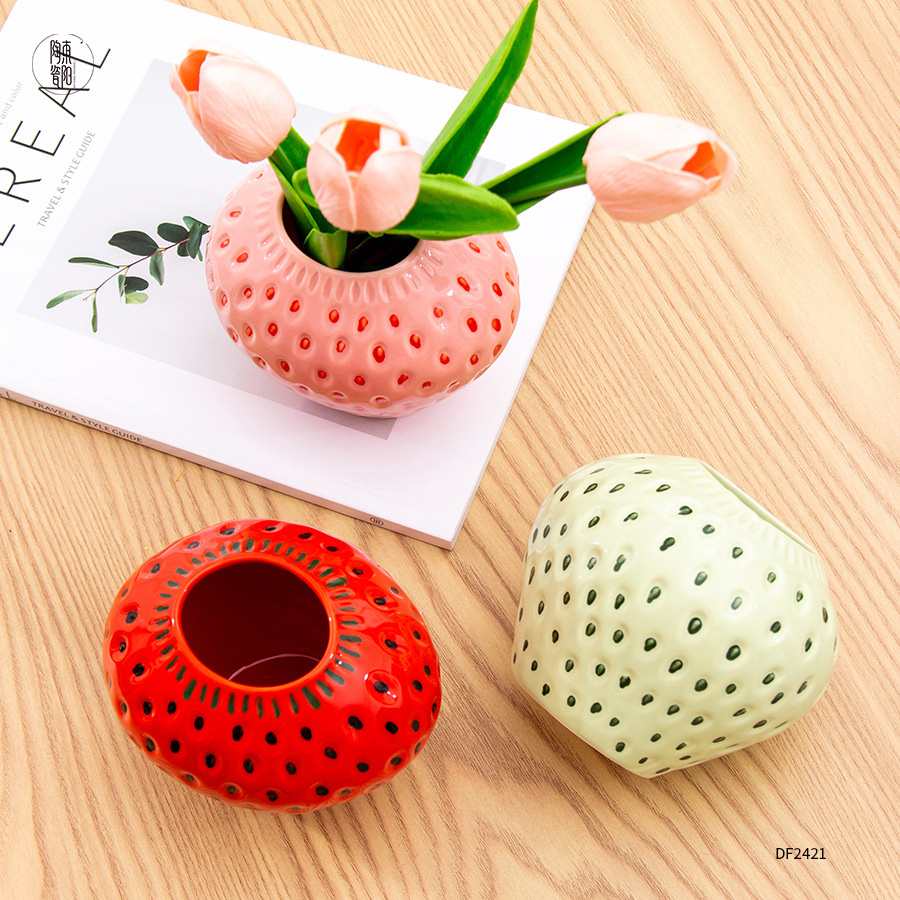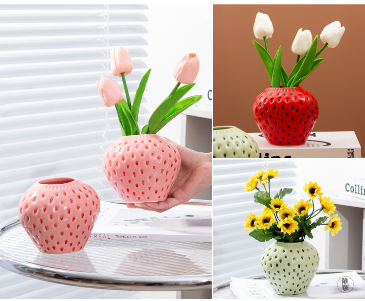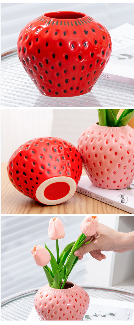 花瓶 フラワーベー イチゴ スセラミックス 陶器 花入れ おしゃれ 北欧 セラミック キャット 無地 かわいい 花びん 生花 一輪挿し ドライフラワー 花束 大きい 大型 小さい 小型 花器