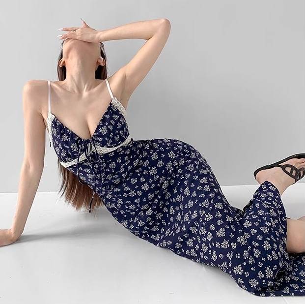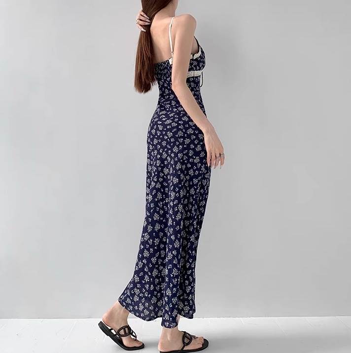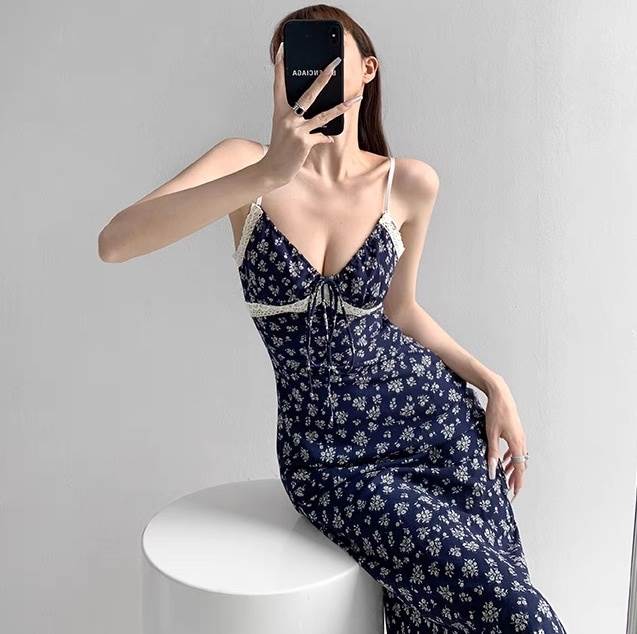 ワンピース レディース フレア ロング マキシ 袖なし ノースリーブ Vネック 切り替え フェミニン レース リボン ハイウエスト セクシー かわいい 大人可愛い シンプル カジュアル おしゃれ レトロ ガーリー ヴィンテージ ラブリー キュート ラグジュアリー クラシカル ベーシック アクティブ ロマンティック ナチュラル 花柄 フラワー 夏 デート お出かけ イベント リゾート 旅行 レストラン ビーチ 休日 カフェ 美脚 脚長 普段使い 着回し トレンド 流行 インスタ映え S M L ネイビー