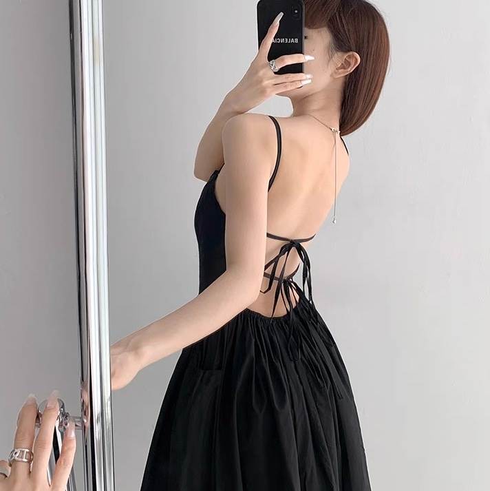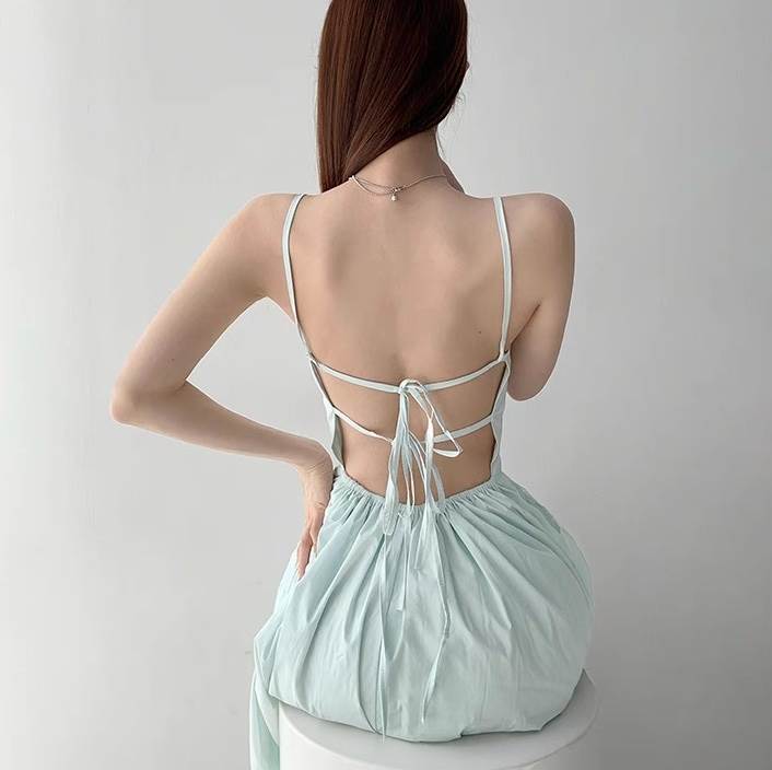 背中の開きとリボンがセクシーで大人可愛いスタイルを実現。