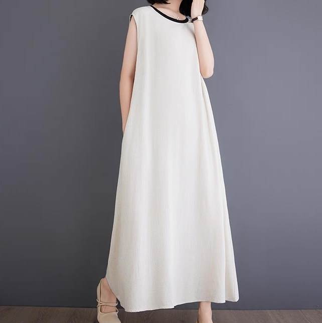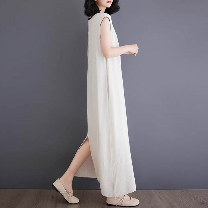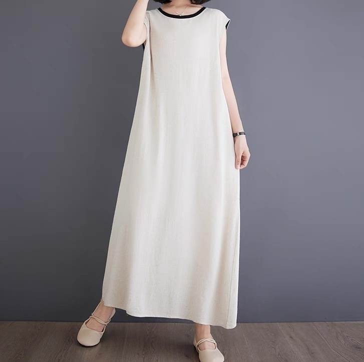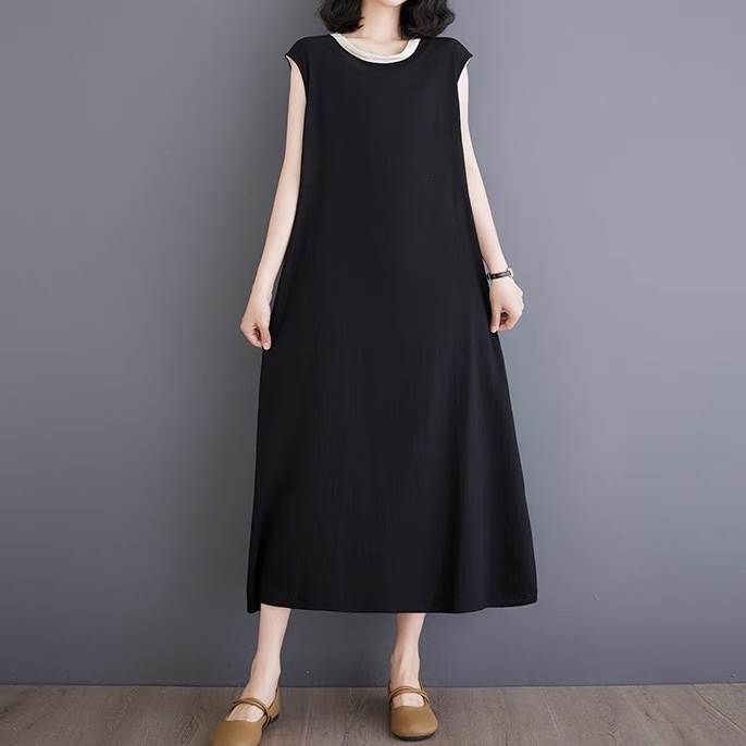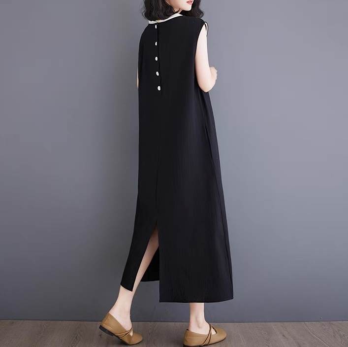 ワンピース レディース フレア マキシ 袖なし ノースリーブ ラウンドネック Aライン オーバーサイズ フェミニン ストリート スリット バックスリット バックコンシャス ボタン ヴィンテージ きれいめ シンプル カジュアル 上品 おしゃれ レトロ こなれ感 ラフ クール モード系 エレガント 抜け感 無地 夏 お出かけ レストラン 休日 着回し トレンド 流行 インスタ映え M L XL 2XL 大きいサイズ ビッグ ゆったり ゆる クリーム 黒 ブラック バイカラー モノトーン ベーシックカラー