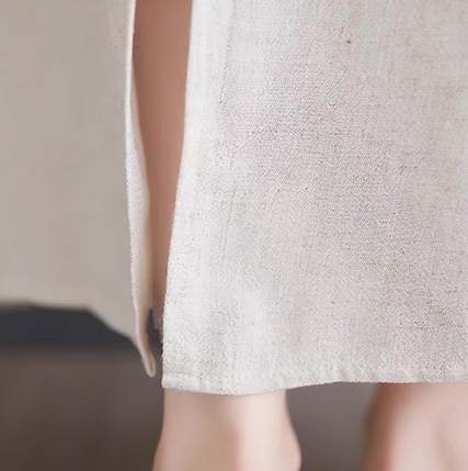 Aラインのシルエットで抜け感を演出し、バックスリットとボタンでバックスタイルも魅力的。