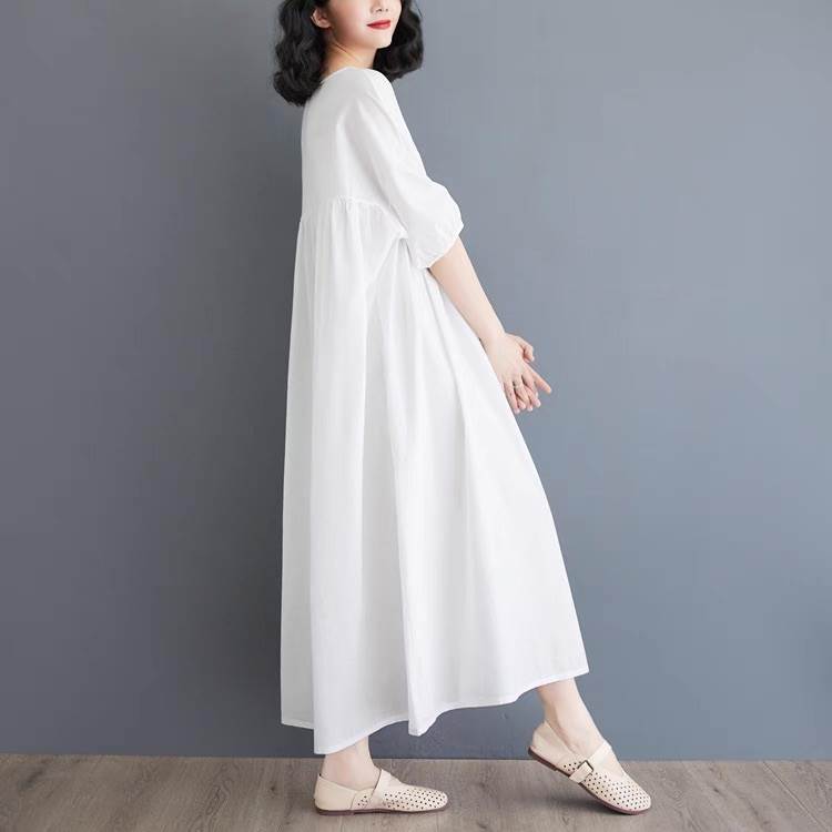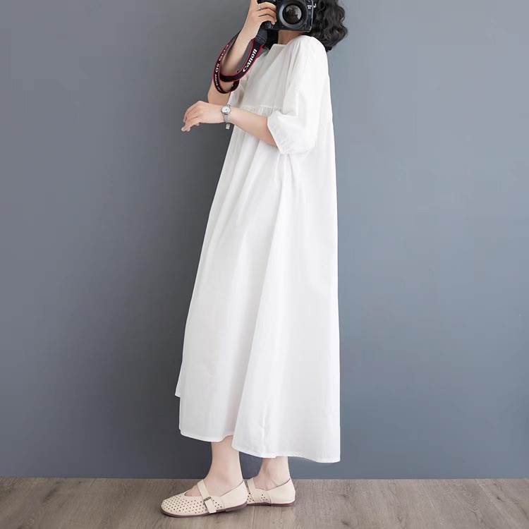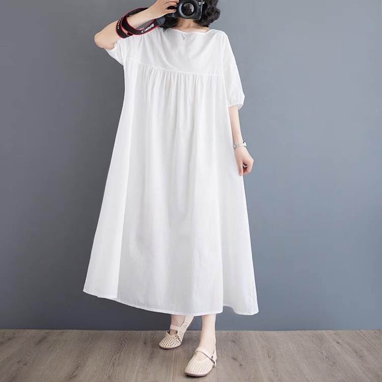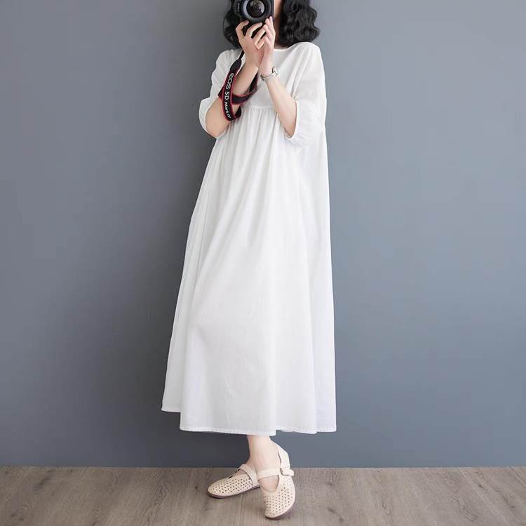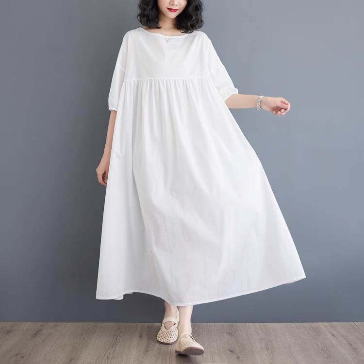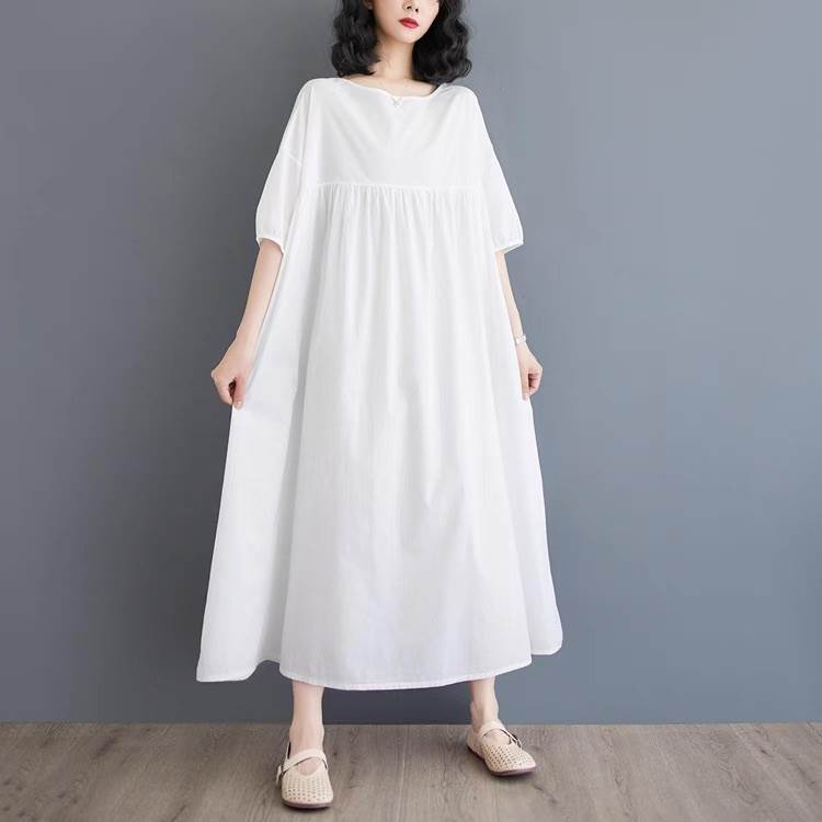 ワンピース レディース フレア マキシ 5分袖 ラウンドネック Aライン オーバーサイズ フェミニン ウエストマーク ハイウエスト 大人可愛い きれいめ シンプル カジュアル おしゃれ レトロ ラフ 抜け感 ヴィンテージ ラブリー キュート ベーシック ナチュラル 無地 春 夏 お出かけ イベント 旅行 休日 ショッピング ライブ フェス 楽ちん 体型カバー 脚長 普段使い 着回し レイヤード 清楚 トレンド 流行 インスタ映え M L XL 2XL 大きいサイズ ビッグ ゆったり ゆる 白 ホワイト
