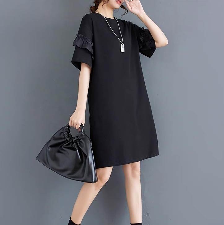 ワンピース レディース フレア 膝丈 膝上 半袖 ラウンドネック フェミニン ストリート フリル かわいい 大人可愛い きれいめ シンプル カジュアル おしゃれ こなれ感 ラフ ガーリー 抜け感 ヴィンテージ ラブリー ベーシック ロマンティック ナチュラル 無地 夏 デート お出かけ イベント リゾート 旅行 ビーチ 女子会 休日 高原 ガーデン ライブ 合コン コンパ フェス 重ね着 楽ちん 美脚 脚長 普段使い 着回し トレンド 流行 インスタ映え 定番 ゆったり ゆる フリーサイズ 黒 ブラック