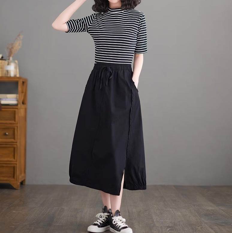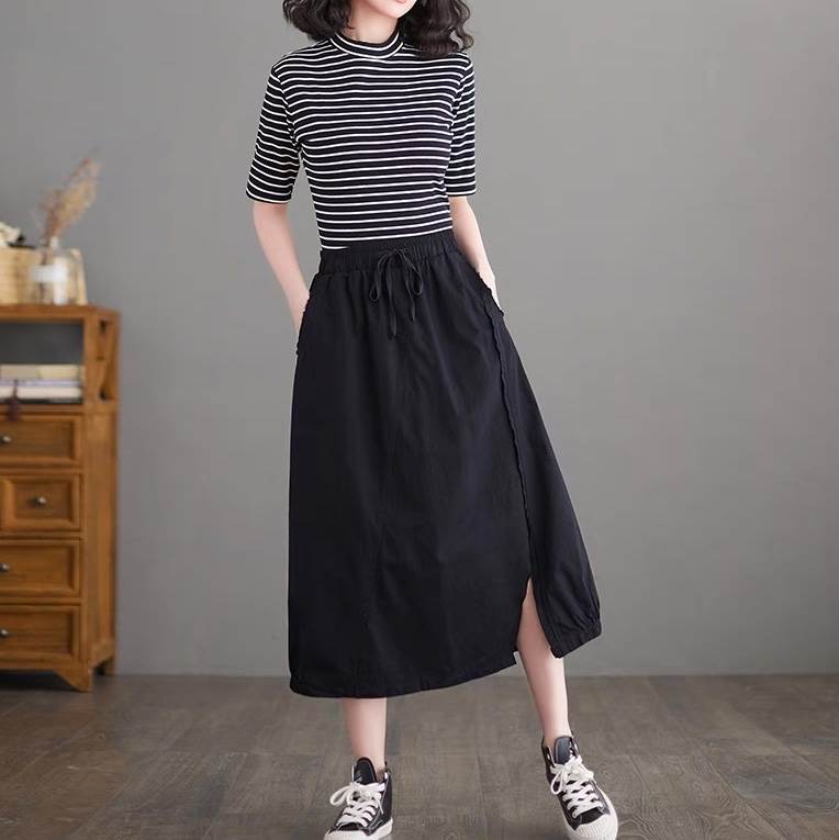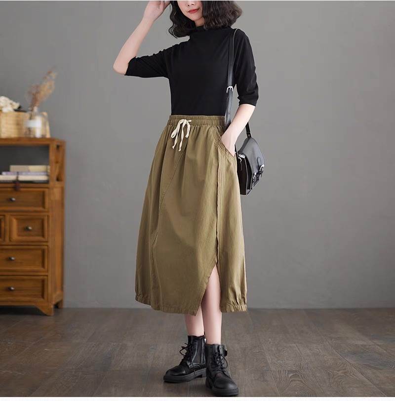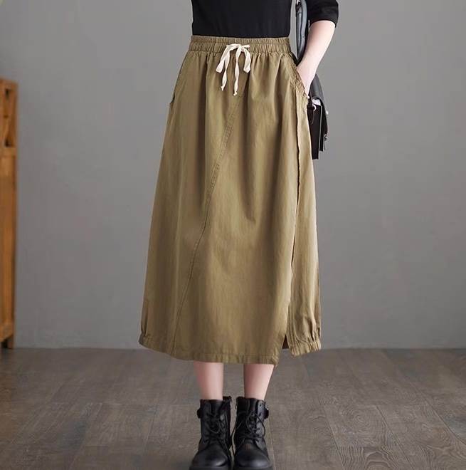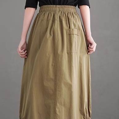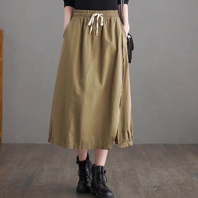 スカート ボトムス レディース フレアスカート ロングスカート ロング Aライン ストリート スリット サイドスリット ポケット ハイウエスト ウエストゴム ドロスト アメカジ 薄手 大人可愛い カジュアル おしゃれ かっこいい レトロ こなれ感 ラフ ルーズ ベーシック アクティブ ナチュラル 無地 春 夏 秋 お出かけ イベント リゾート 旅行 休日 普段使い トレンド 流行 インスタ映え M L XL 2XL 大きいサイズ ゆったり ゆる 黒 ブラック ベージュ カーキ アースカラー 大人カラー