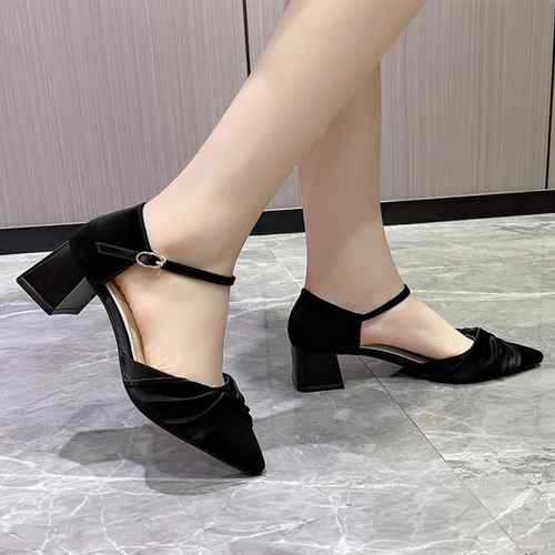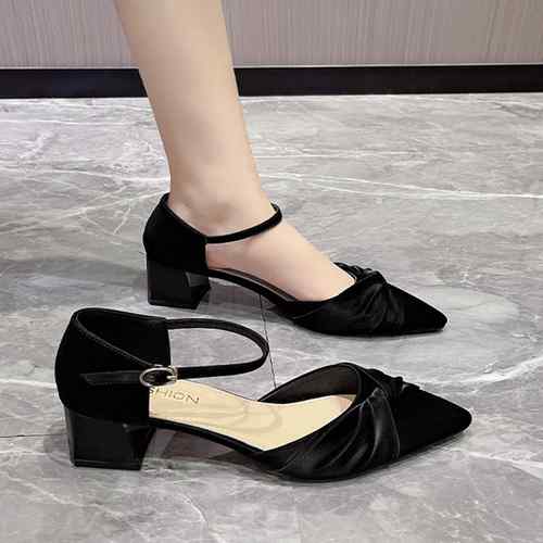 レディース 韓国風 チャンキーヒールパ