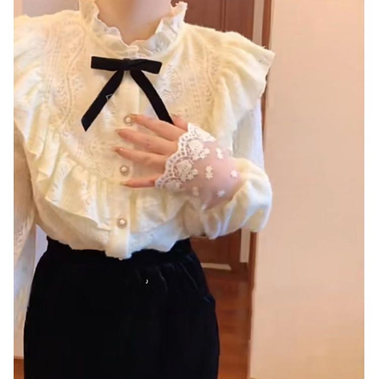 シアースリーブ ドッキングシャツ ボウタイシャツブラウス