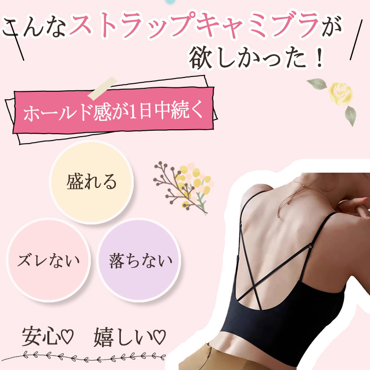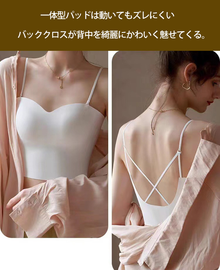 シームレス キャミブラトップ バックスクロス 背中見せ パッド一体型 ノンワイヤー ブラトップ 軽量 やわらかい インナー パッド付き 美しく盛れる