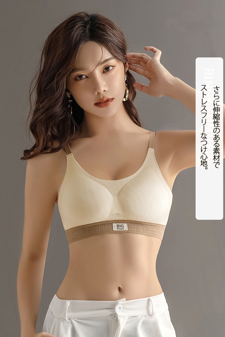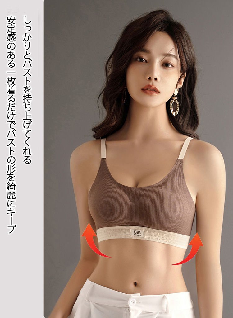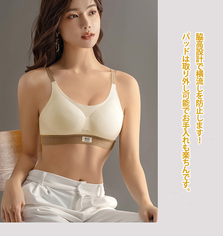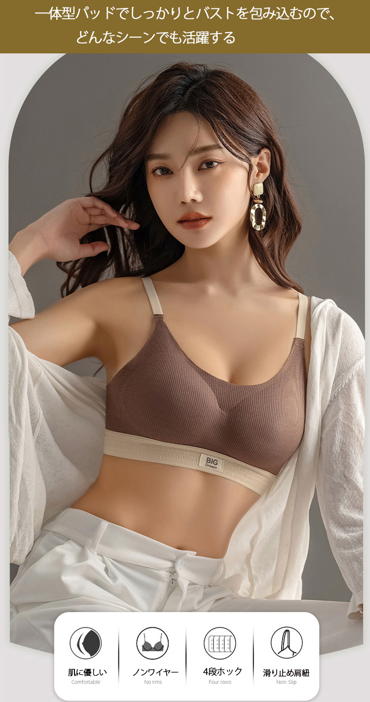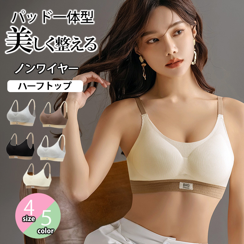 ハーフトップ バイカラー ブラ ノンワイヤー 脇高設計 4段ホック 脇高ブラ 横流れ防止 パッド取り外し可能 ブラジャー ノンワイヤーブラ