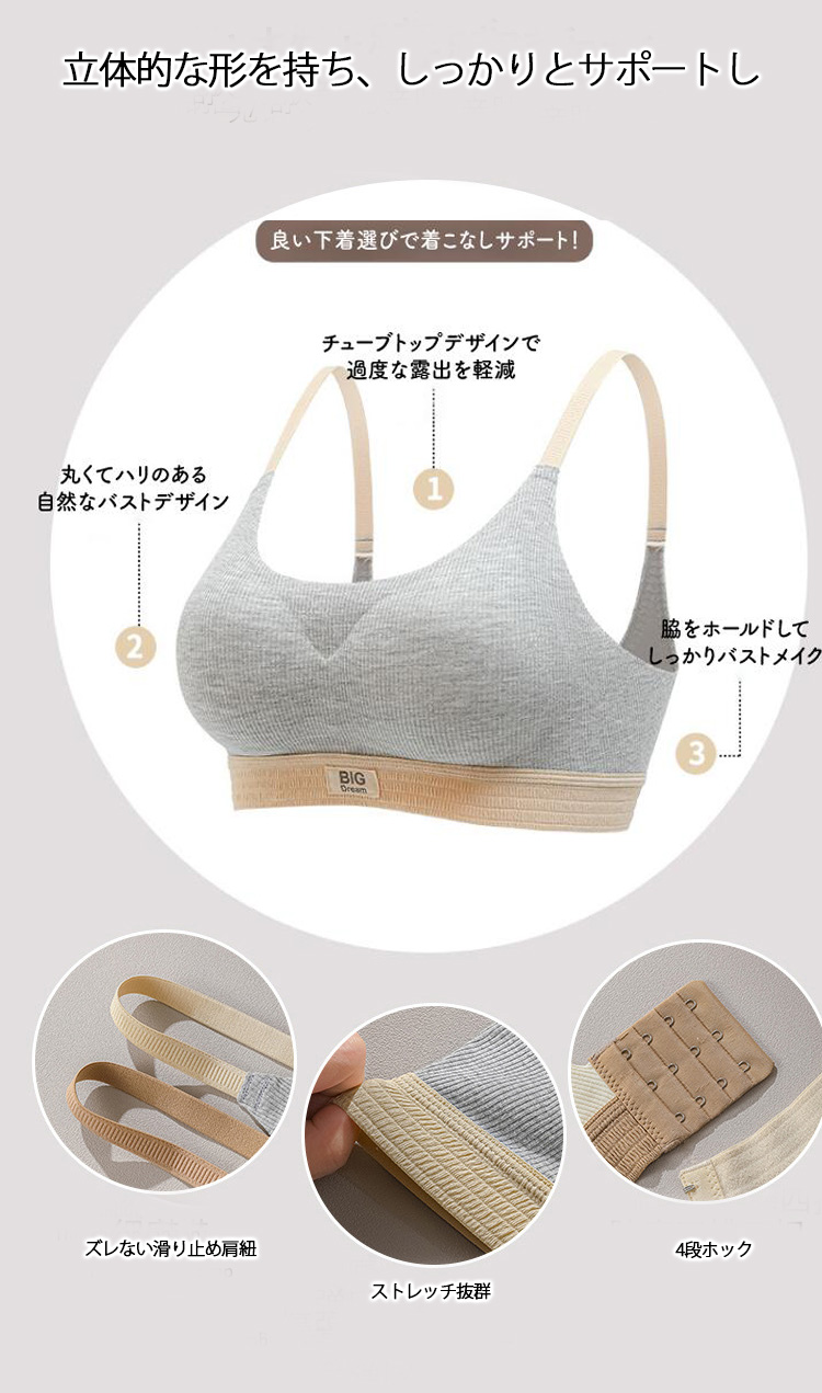 ノンワイヤーなので締め付感なく、軽やかなフィット感♪