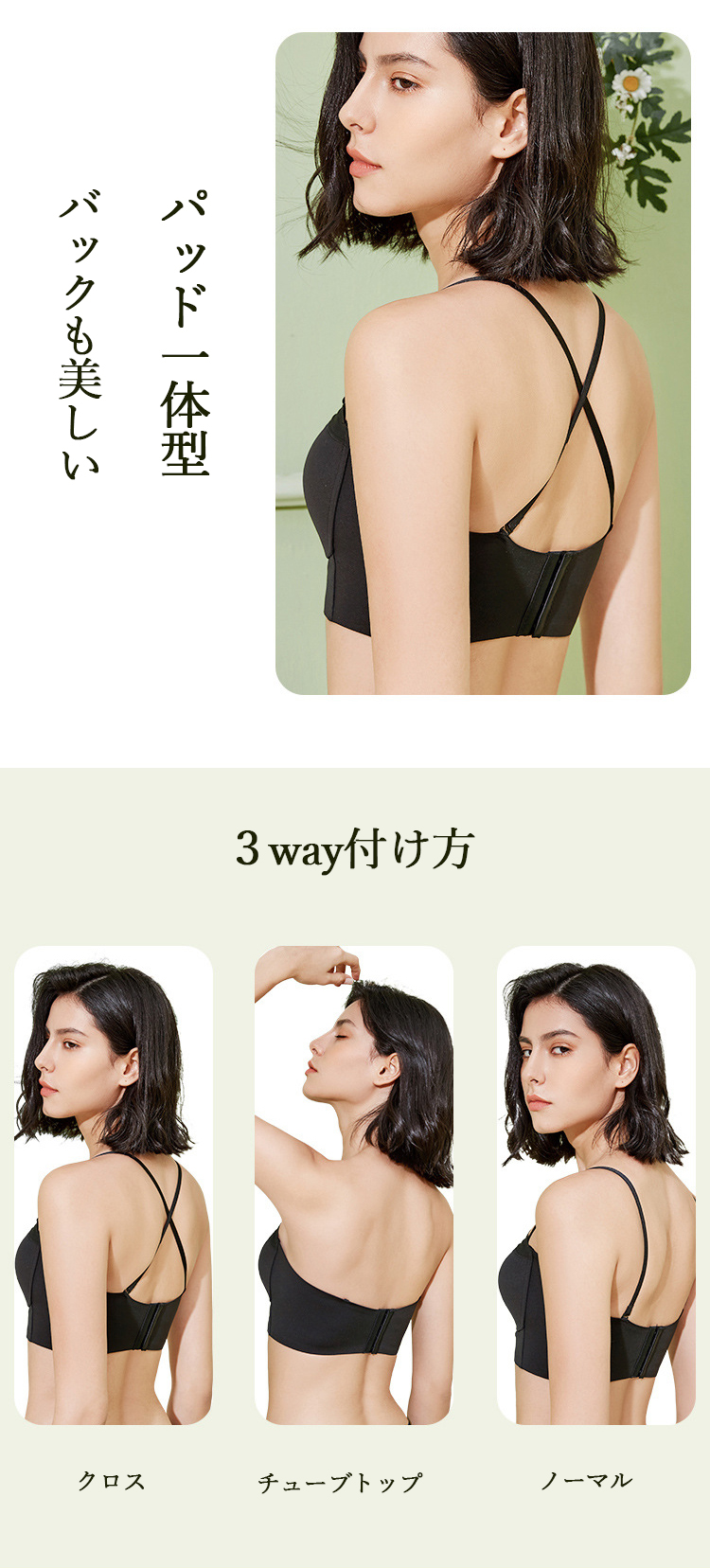 蒸れにくい 軽量 3way ブラトップ ノンワイヤー チューブトップ キャミブラトップ 単品 パッド一体型 ブラトップ インナー 通気性 伸縮性 抜群 4段ホック