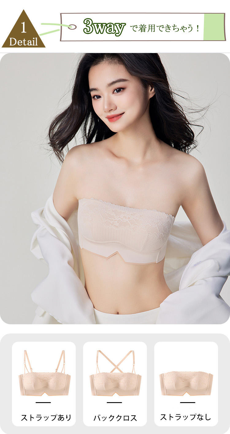 ノンワイヤー ブラトップ カップ付き 刺繍 美胸 ブラキャミ ストラップレス バックストラップ 単品 ノンワイヤー チューブトップ ズレ防止 滑り止め ブラトップ カップ付き へそだし
